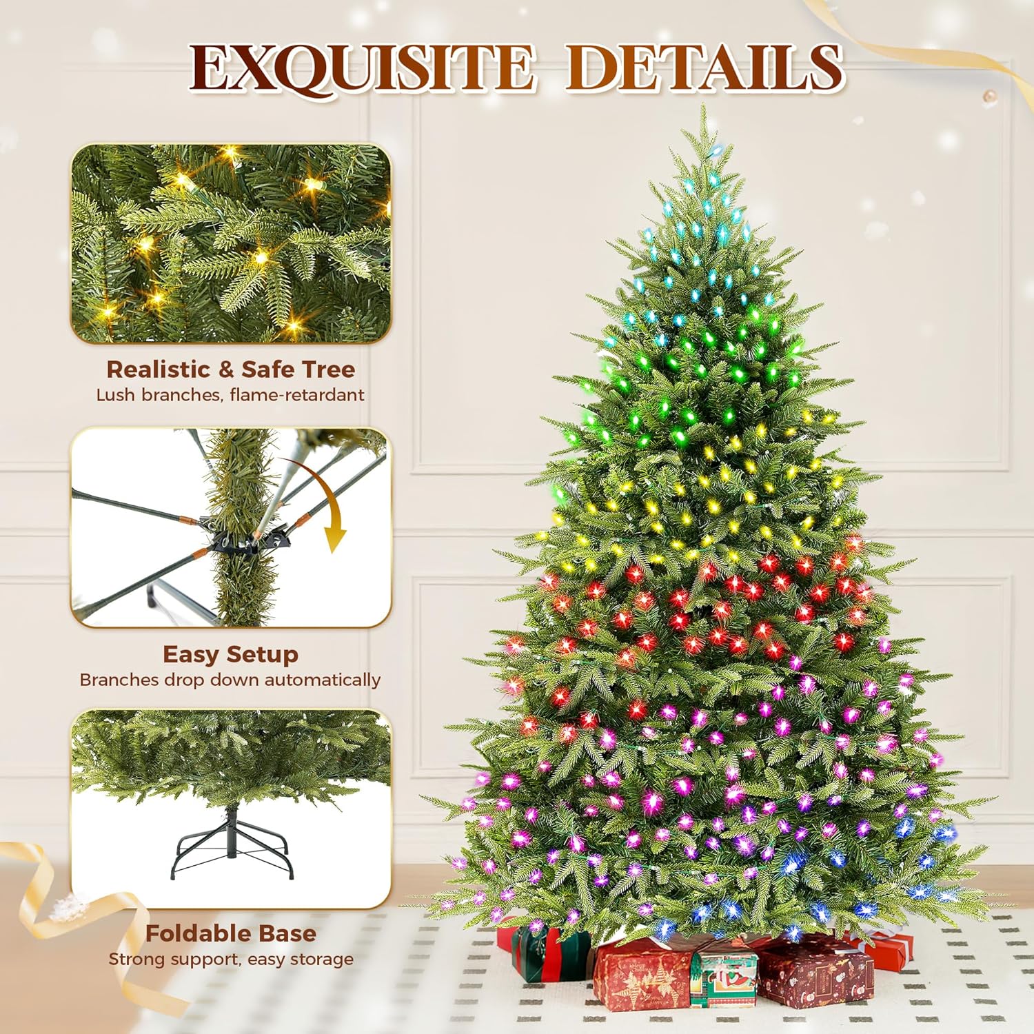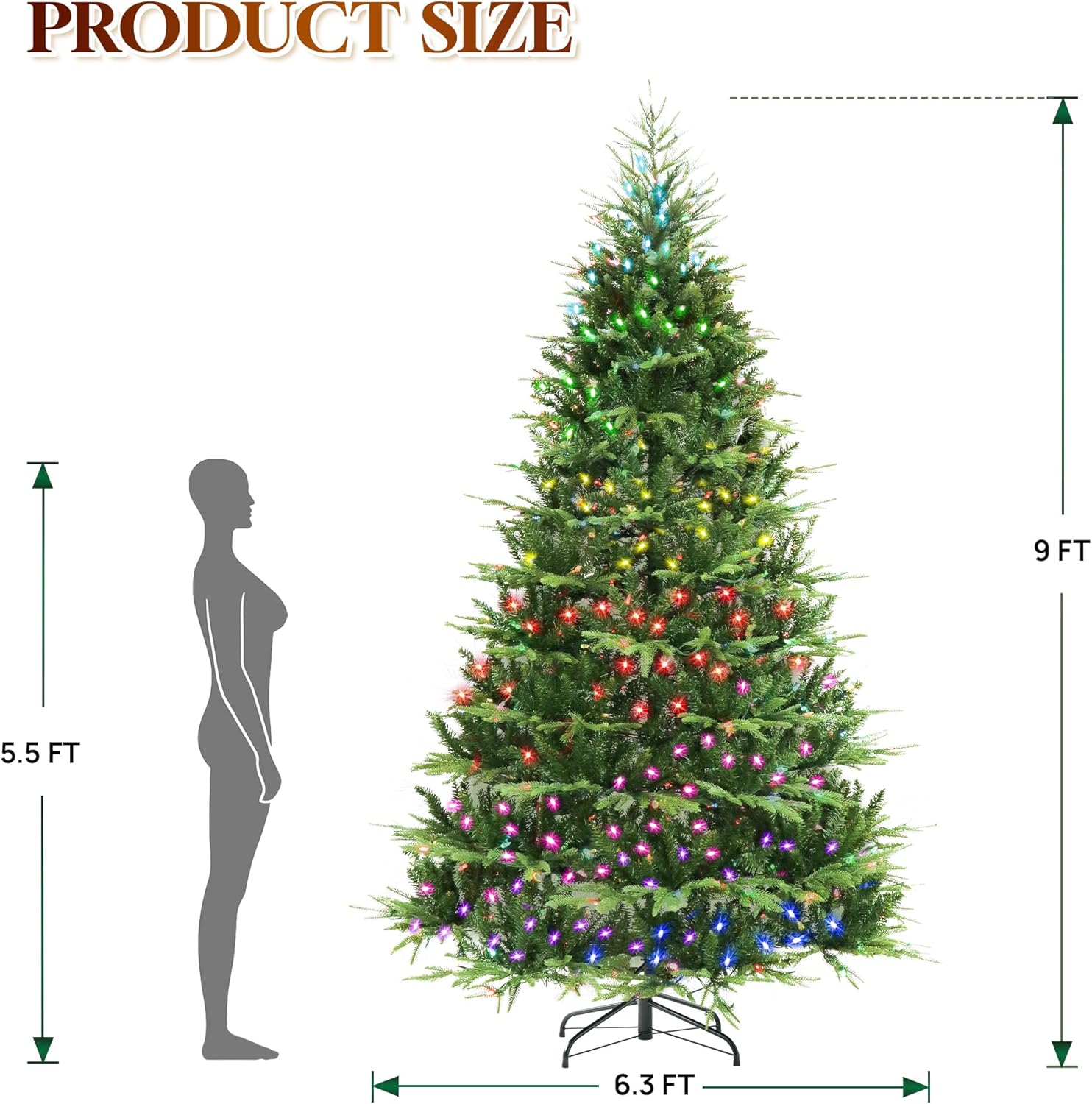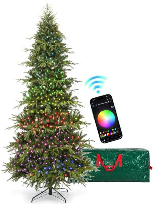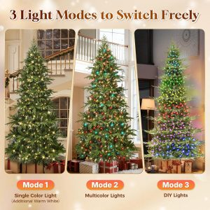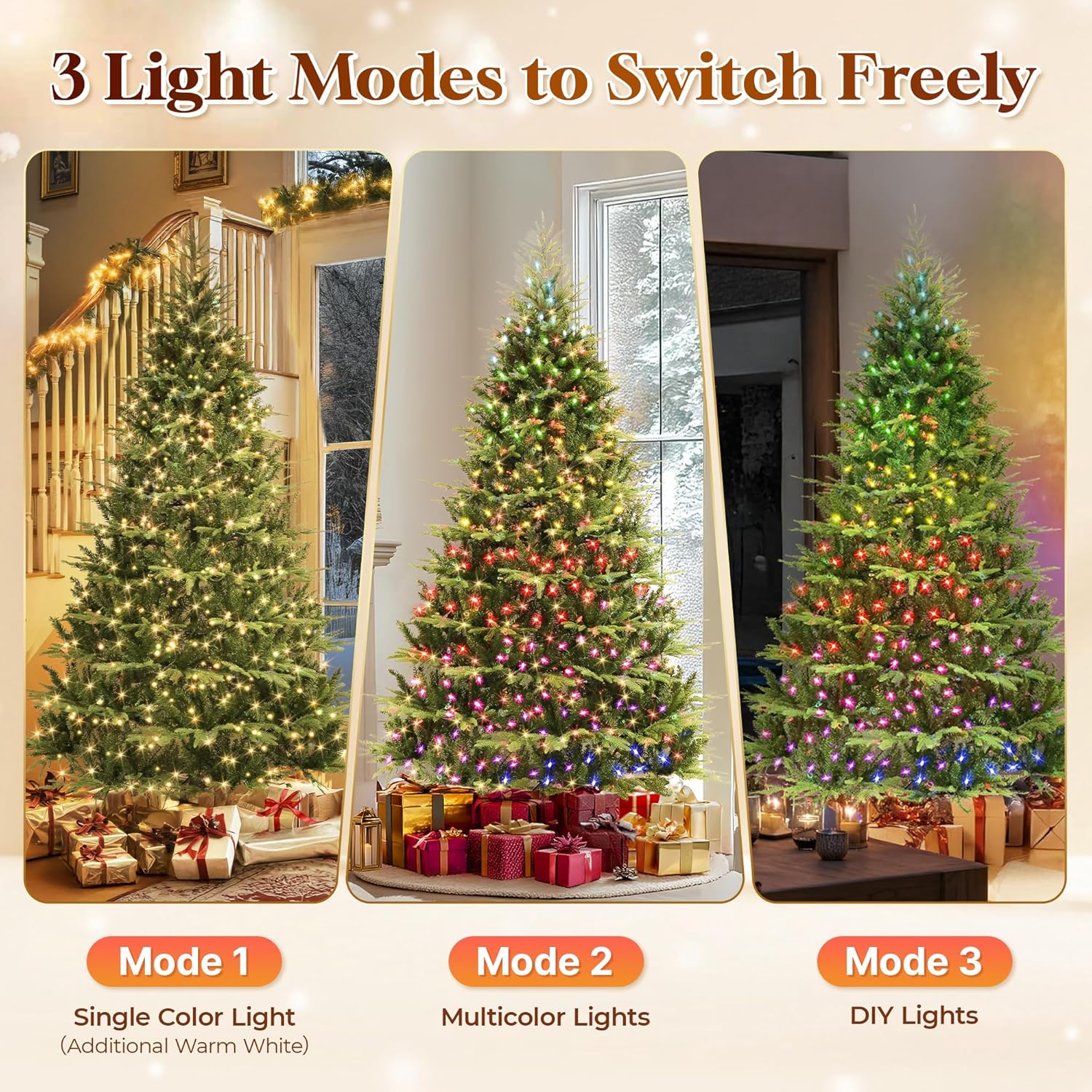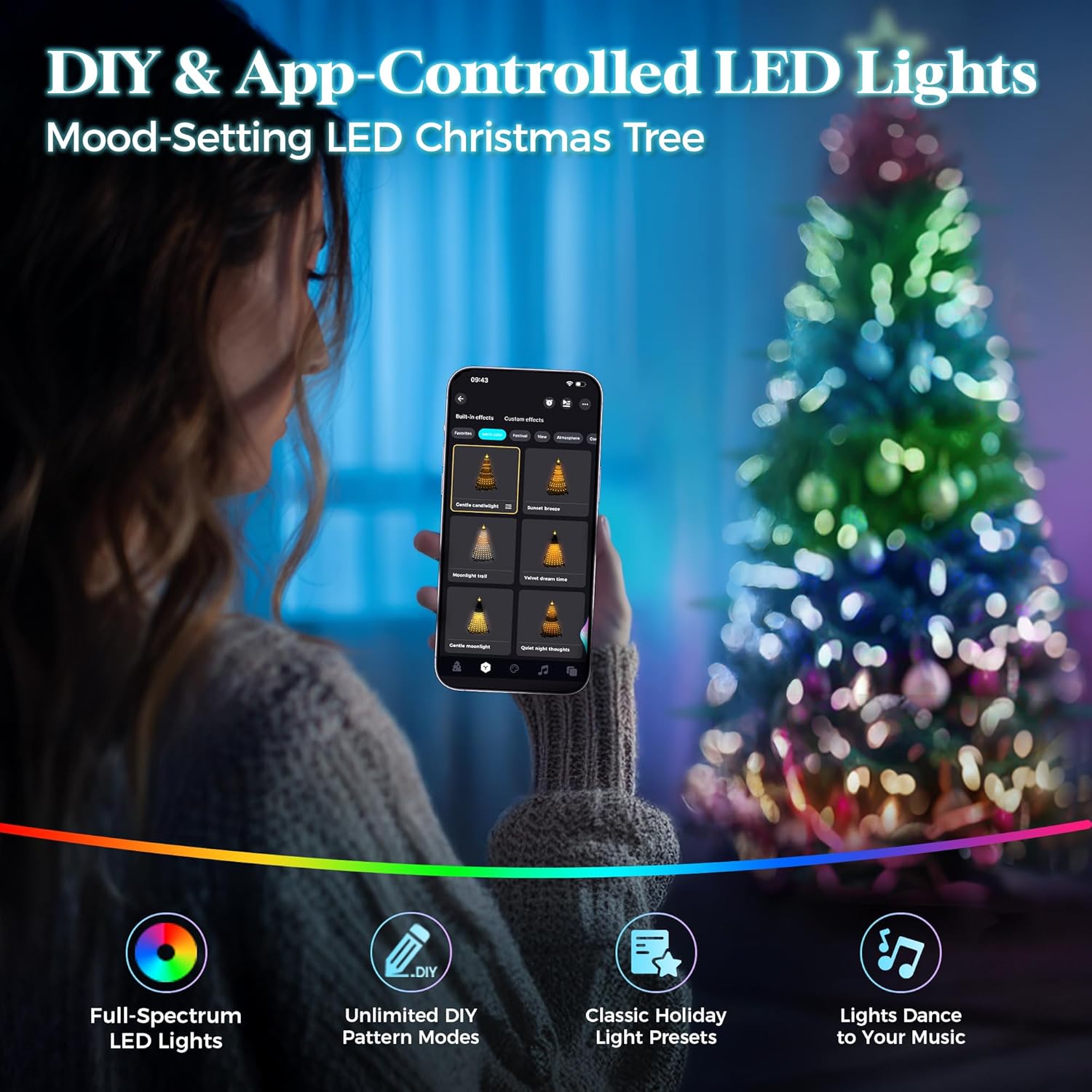 - 【Christmas Tree with DIY LED Lights】Enjoy the magic of this 12 ft Christmas tree coming pre-lit with 1800 RGB LEDs. Control everything with the app or remote: adjust colors, brightness, and twinkle modes to match your mood. Choose from preset lighting patterns for festive gatherings, or let the lights dance to your holiday music for unforgettable parties