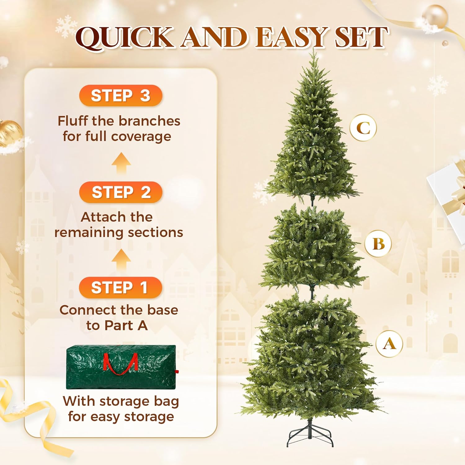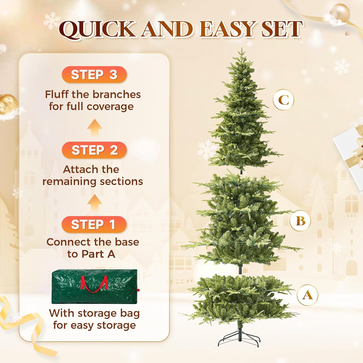 - 【Sturdy Metal Stand & Storage Bag】A solid metal stand ensures stability, even when decorated with heavy ornaments. The foldable design makes takedown simple, and the included storage bag keeps your realistic Christmas tree neatly packed and protected until the next holiday season
