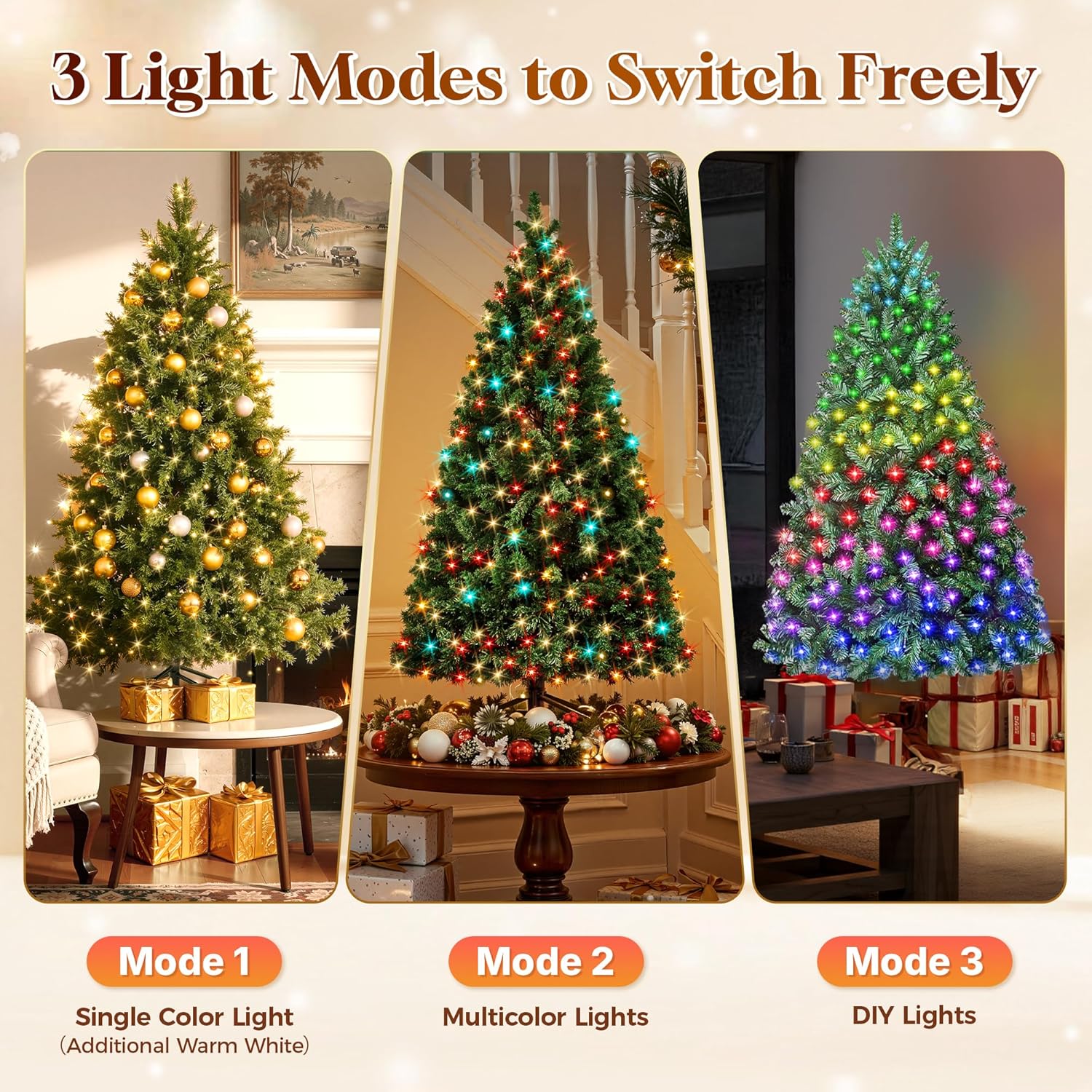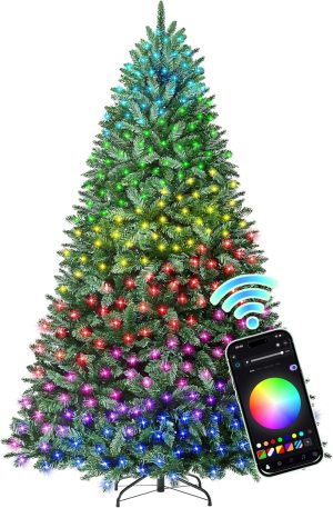 HOLLO STAR 6 ft Prelit Christmas Tree with 270 LED Lights, App Control, Artificial Christmas Tree with Multi-Color RGBW Lights, 1072 Branch Tips, Metal Base, Easy to Assemble, for Home, Party