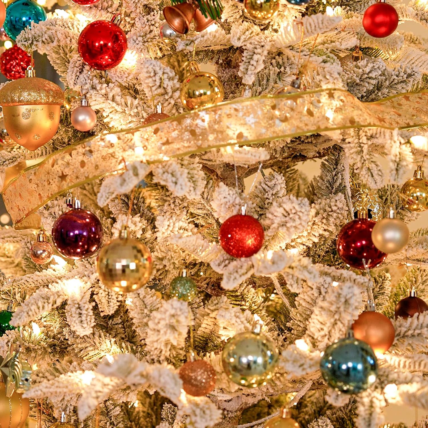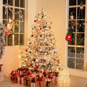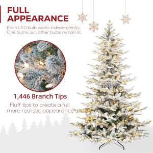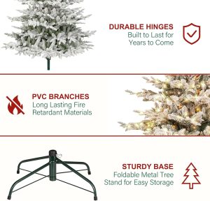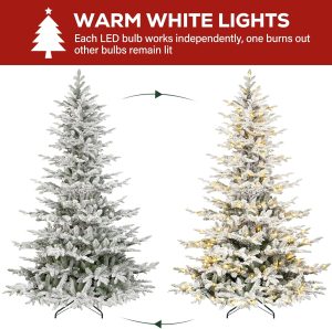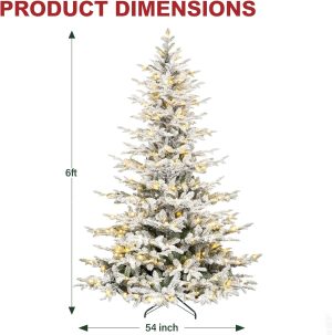 Hykolity 6 ft Snow Flocked Aspen Fir Christmas Tree, Prelit Artificial Christmas Tree with 330 Warm White Lights, 797 PE&PVC Branch Tips, Metal Stand and Hinged Branches