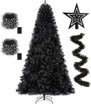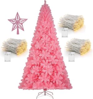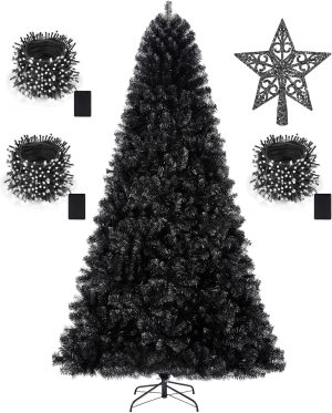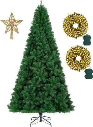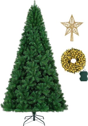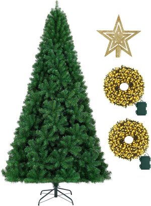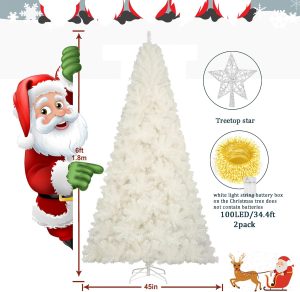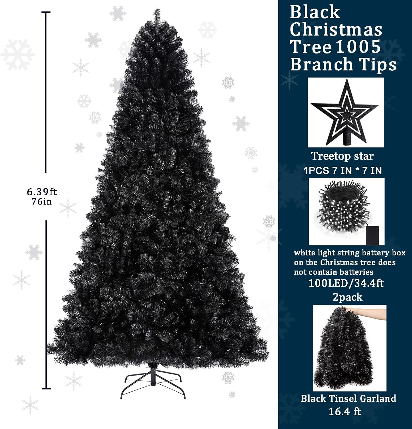 - 🎄Unique christmass tree artificial christmas tree with lights for Indoor & Outdoor Use: 1Pcs christmas tree 6.3ft 1005 Branch Tips Contains 1pcs tree top star 7 in X 7 in, 2 packs of battery box powered LED lights string(Batteries not include) 100 LED 34.4ft X2,Easy Assembly, Metal Foldable Base, tree christmas decor tree with lights is an attractive addition for indoor and outdoor decoration, Full natural appearance Featuring hundreds of individually crafted branch tips to create full bodied branches, this tree is designed to look and feel lifelike. will add a touch of luxurious and elegance to your room. It is ideal for decorating home, office, shops, apartment