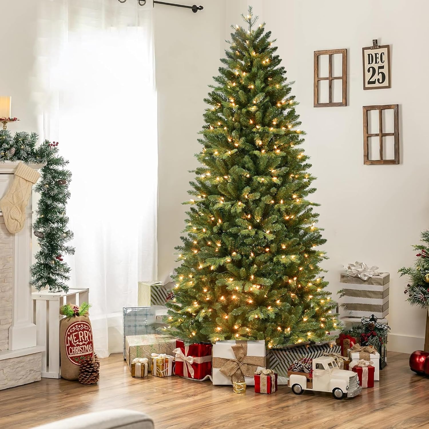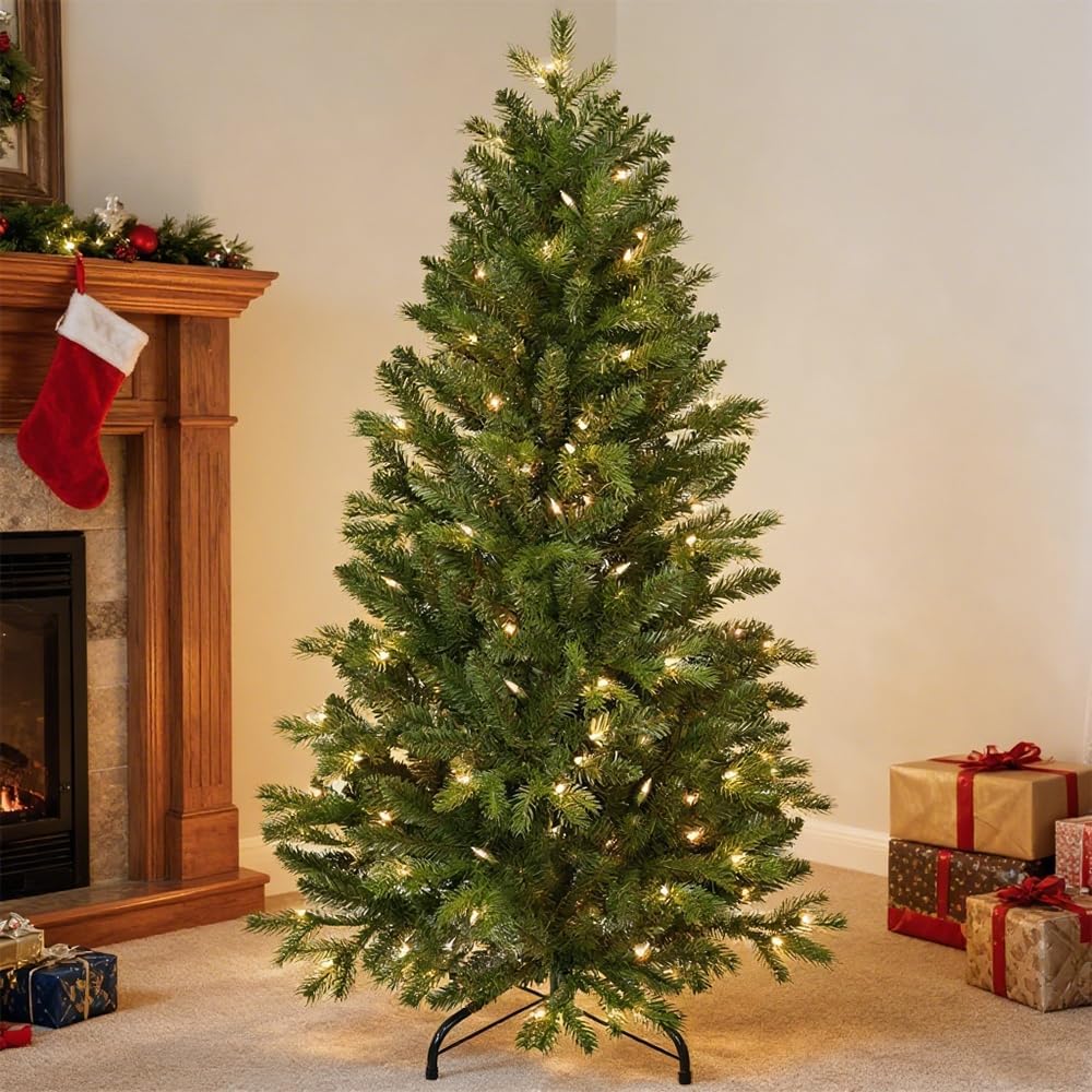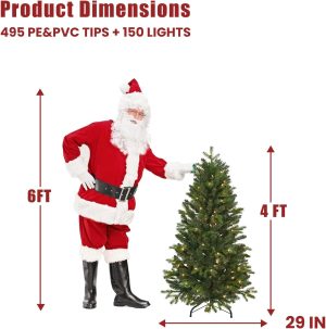 - REALISTIC & FULL: With 643 PE and PVC branch tips, this 4 ft prelit Christmas tree offers a lush and realistic appearance that resembles a full-grown spruce tree. Perfect for displaying your ornaments and adding a festive touch to your home.