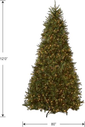 National Tree Company 12 ft Pre-Lit Dunhill Fir Artificial Christmas Tree, 1,500 Clear Lights, 7,794 Tips, Includes Stand, Green