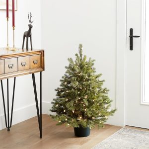 National Tree Company 3 ft Pre-Lit Hampton Spruce Mini Artificial Christmas Tree, 100 Clear Lights, 579 Tips, Green Growers Pot