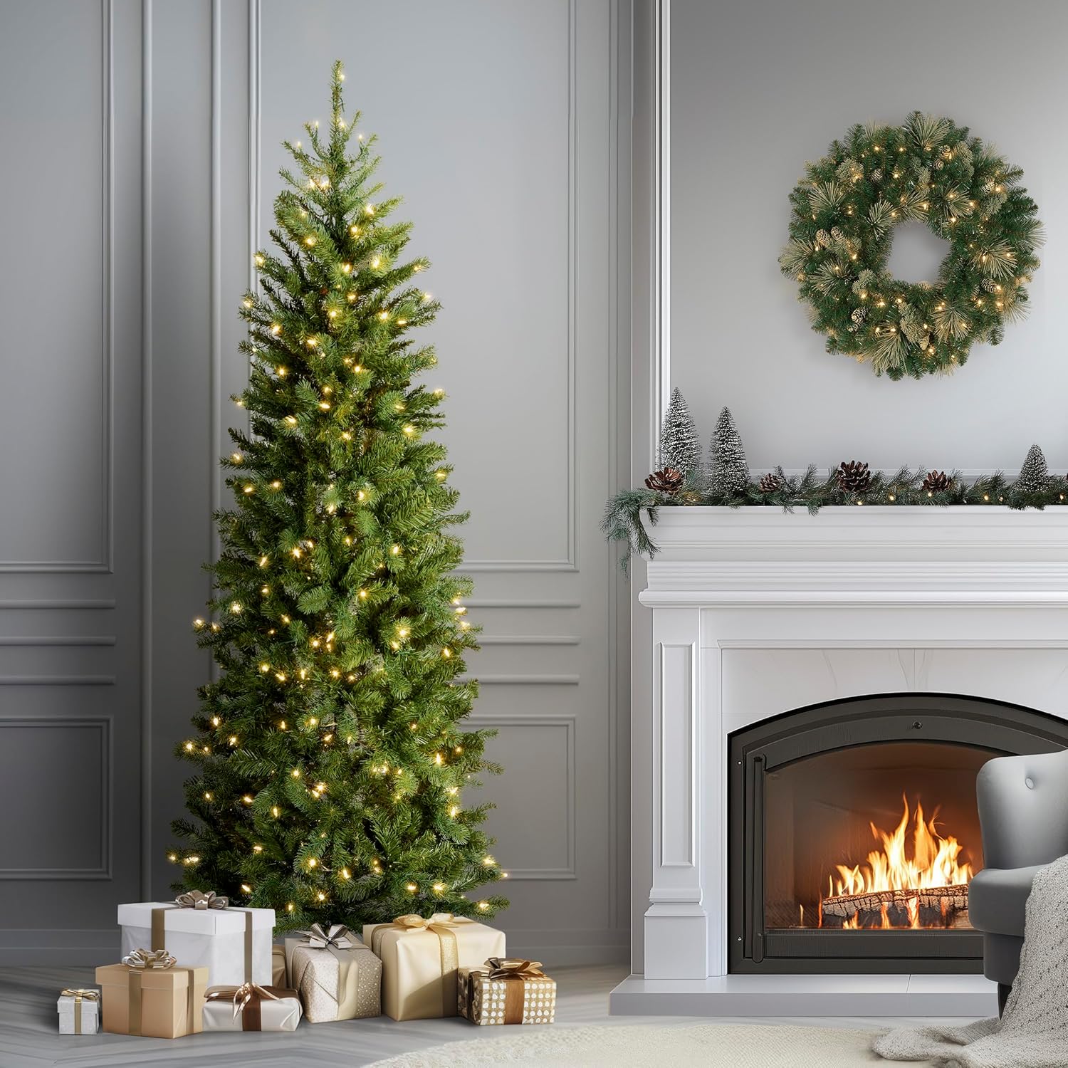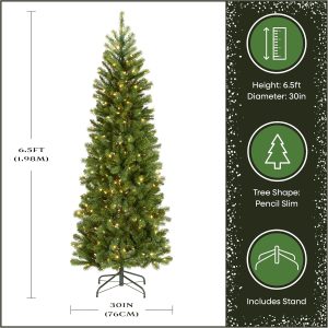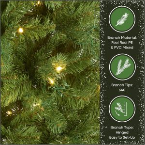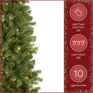 National Tree Company 6.5 ft Pre-Lit Downswept Douglas Fir Slim Artificial Christmas Tree, 300 LED Lights, 640 Tips, PowerConnect, Foot Pedal, 10 Light Functions, Includes Stand, Green