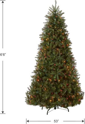 National Tree Company 6.5 ft Pre-Lit Dunhill Fir Full Artificial Christmas Tree, 650 Multicolor Lights, 1,838 Tips, Includes Stand, Green