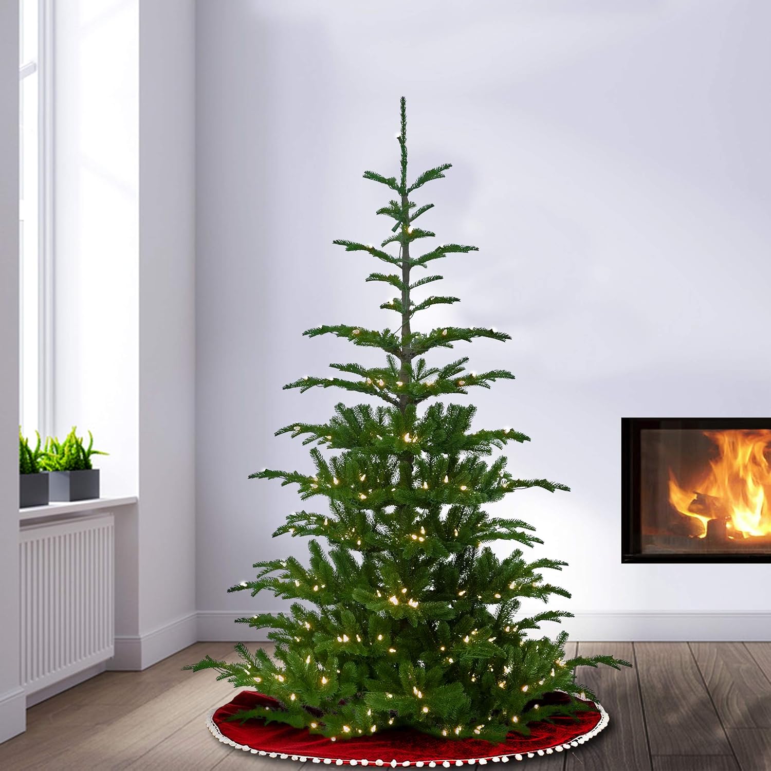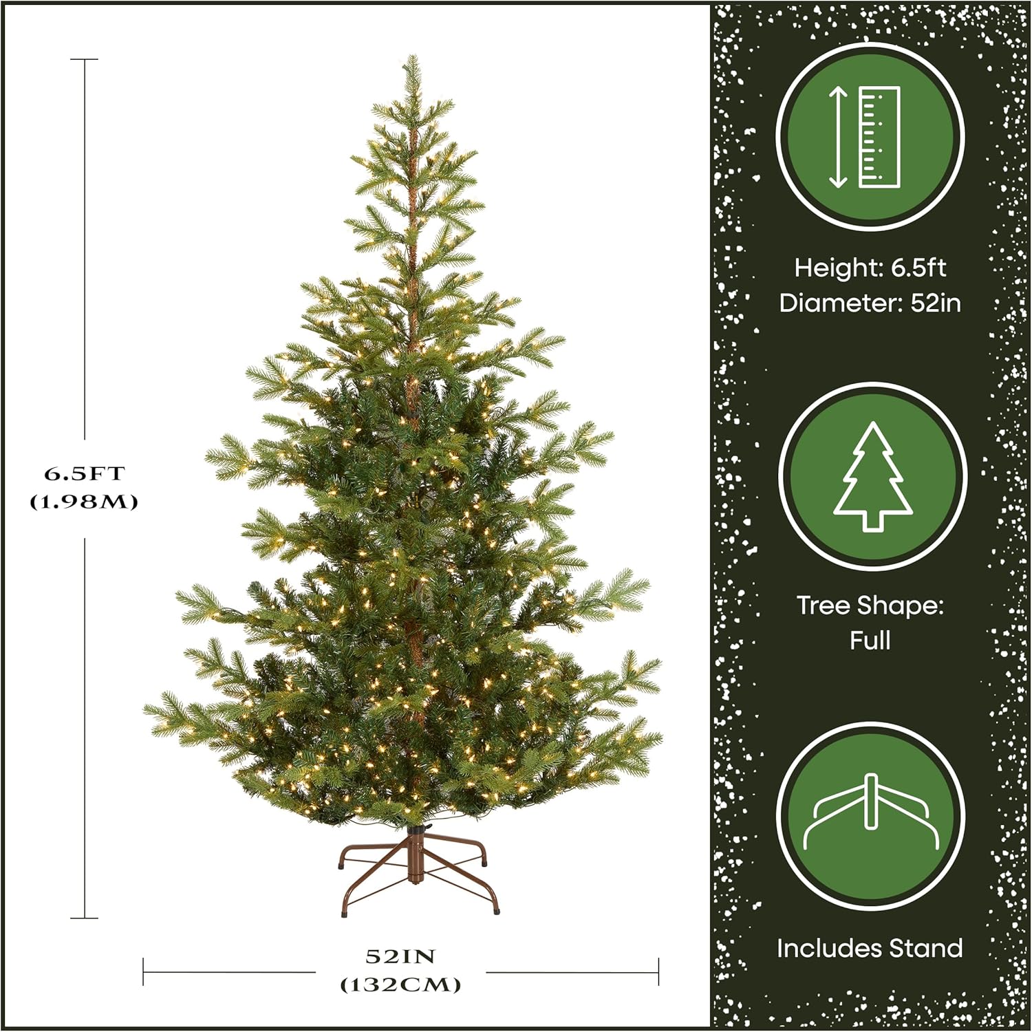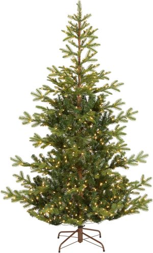 - This Norwegian Spruce Pre-Lit Artificial Green Christmas Tree is 6.5 feet tall with a 52 inch base diameter. Featuring hundreds of 'Feel Real' individually crafted branch tips to create full bodied branches, this tree is designed to look and feel lifelike.