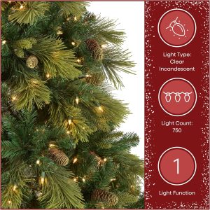 - Features 750 white lights that remain lit even when a bulb goes out. The lights are strung on the tree before packaging, offering an easier, more convenient set up.