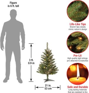 - This Kingswood Fir Slim Pre-Lit Artificial Green Christmas Tree is 3 feet tall with a 21 inch base diameter. Featuring hundreds of individually crafted branch tips to create full bodied branches, this tree is designed to look and feel lifelike.