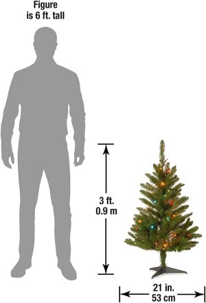 - This Kingswood Fir Slim Pre-Lit Artificial Green Christmas Tree is 3 feet tall with a 21 inch base diameter. Featuring hundreds of individually crafted branch tips to create full bodied branches, this tree is designed to look and feel lifelike.