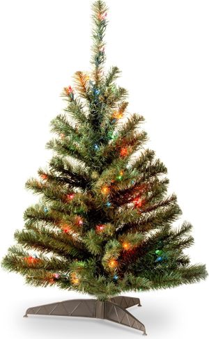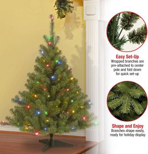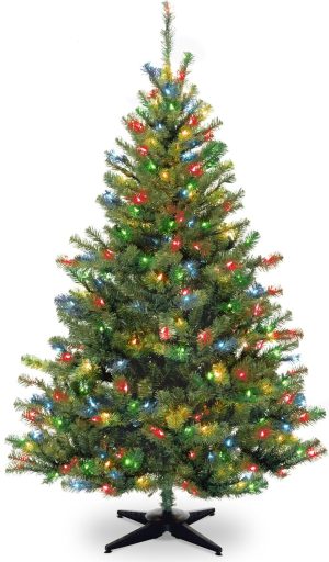 National Tree Company Pre-Lit Artificial Medium Christmas Tree, Green, Kincaid Spruce, Multicolor Lights, Includes Stand, 4 Feet