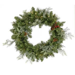 Pre-Lit Buzzard Pine Assortment Set of 1 Entrance Tree, 1 Wreath, 1 Garland, Plug-In