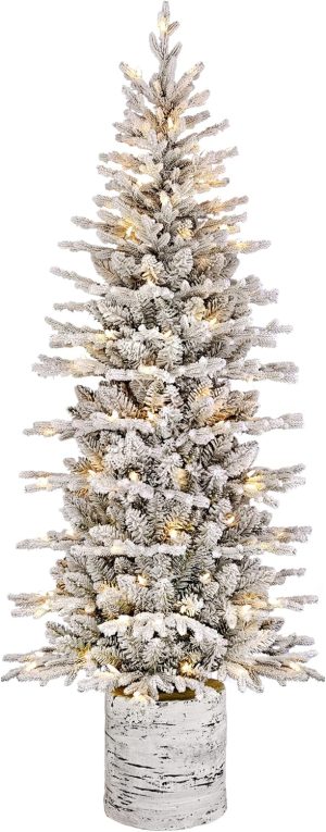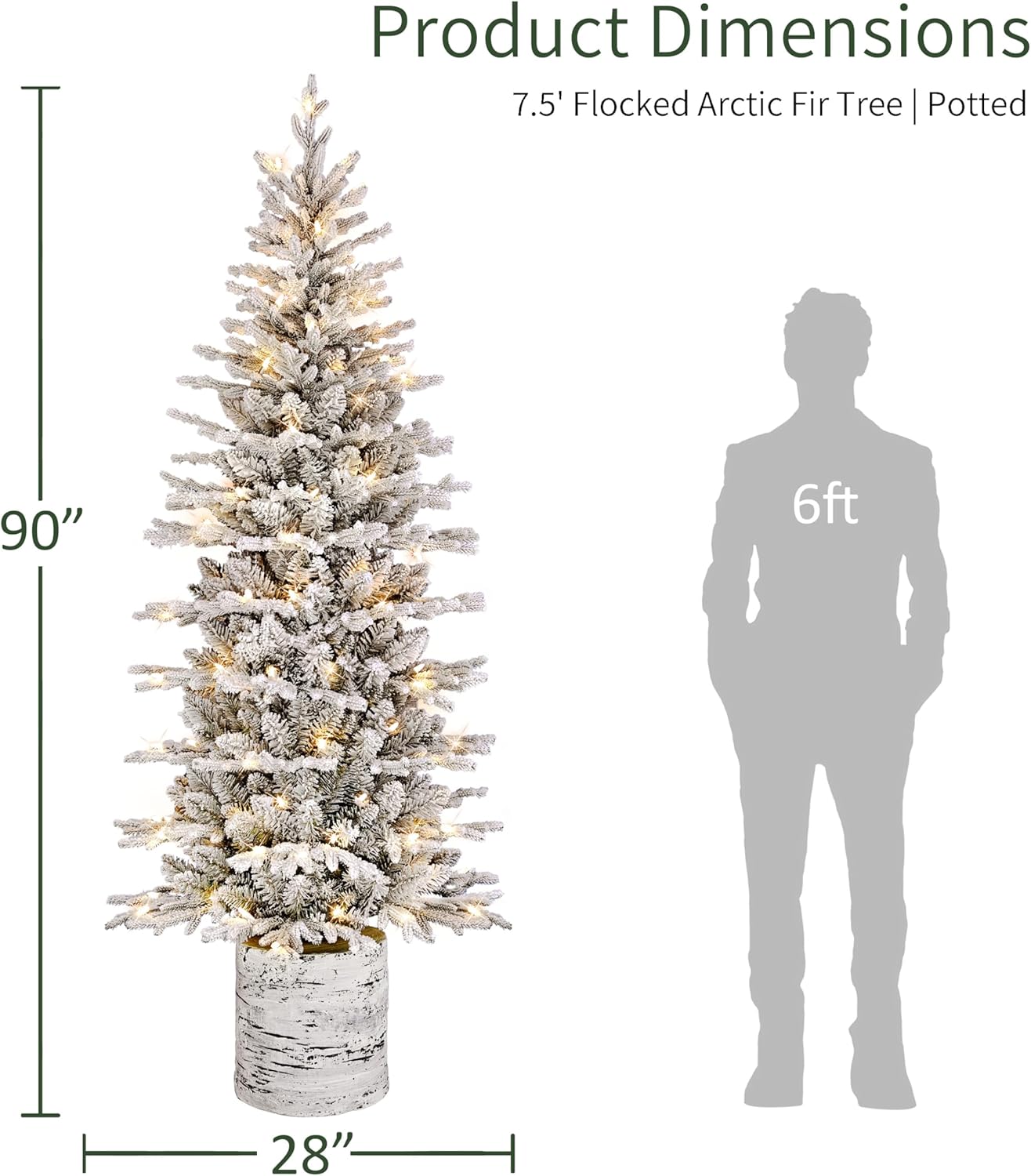 - Durable Potted Stand: The Christmas tree sits securely in a pot, providing unmatched stability and long-lasting use for your flocked pre-lit artificial Christmas tree