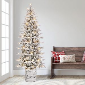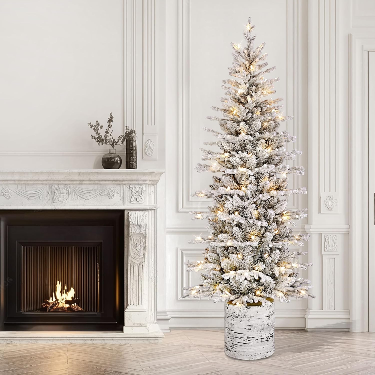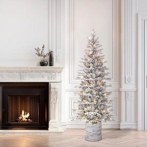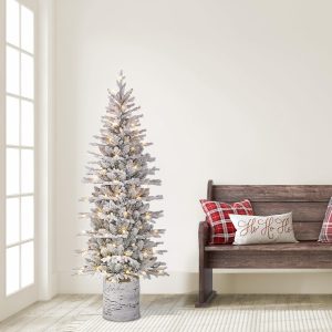 - Quick and Easy Assembly: Hinged branches and letter-coded sections let you assemble, fluff, and decorate in minutes, ideal for hassle-free prelit flocked potted Christmas tree decorations setup