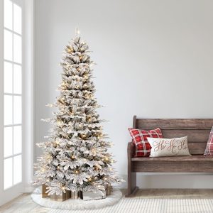 - Quick and Easy Assembly: Hinged branches and letter-coded sections let you assemble, fluff, and decorate in minutes, ideal for hassle-free prelit flocked Christmas tree decorations setup