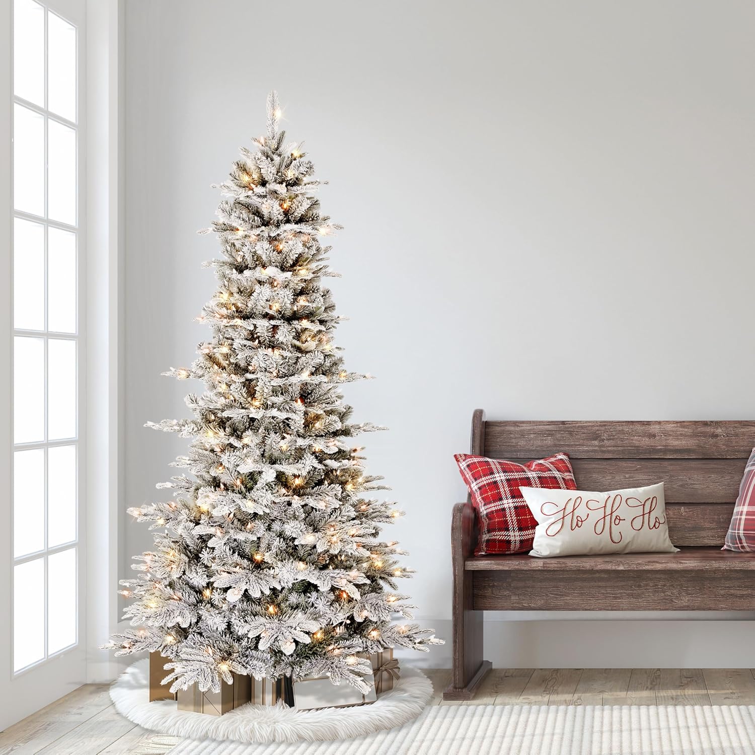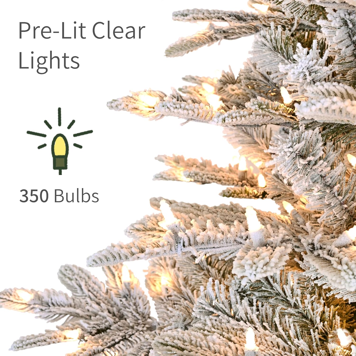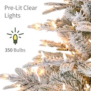 - Pre-Strung Clear Lights: Professionally hand-strung with 450 clear lights for even coverage; if one bulb fails, others stay lit, creating a worry-free festive glow for your snow flocked prelit artificial Christmas tree