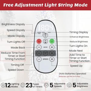 - 🎄【Pre-lit Lights with Remote】Our Pre-lit Pencil Christmas Tree have 5 brightness levels and 12 lighting modes. You can change lighting modes by remote control. Only a click of a button can create suitable atmospheres for your needs. The remote control operated by 2 AAA battery. (Note: Batteries are not included.)