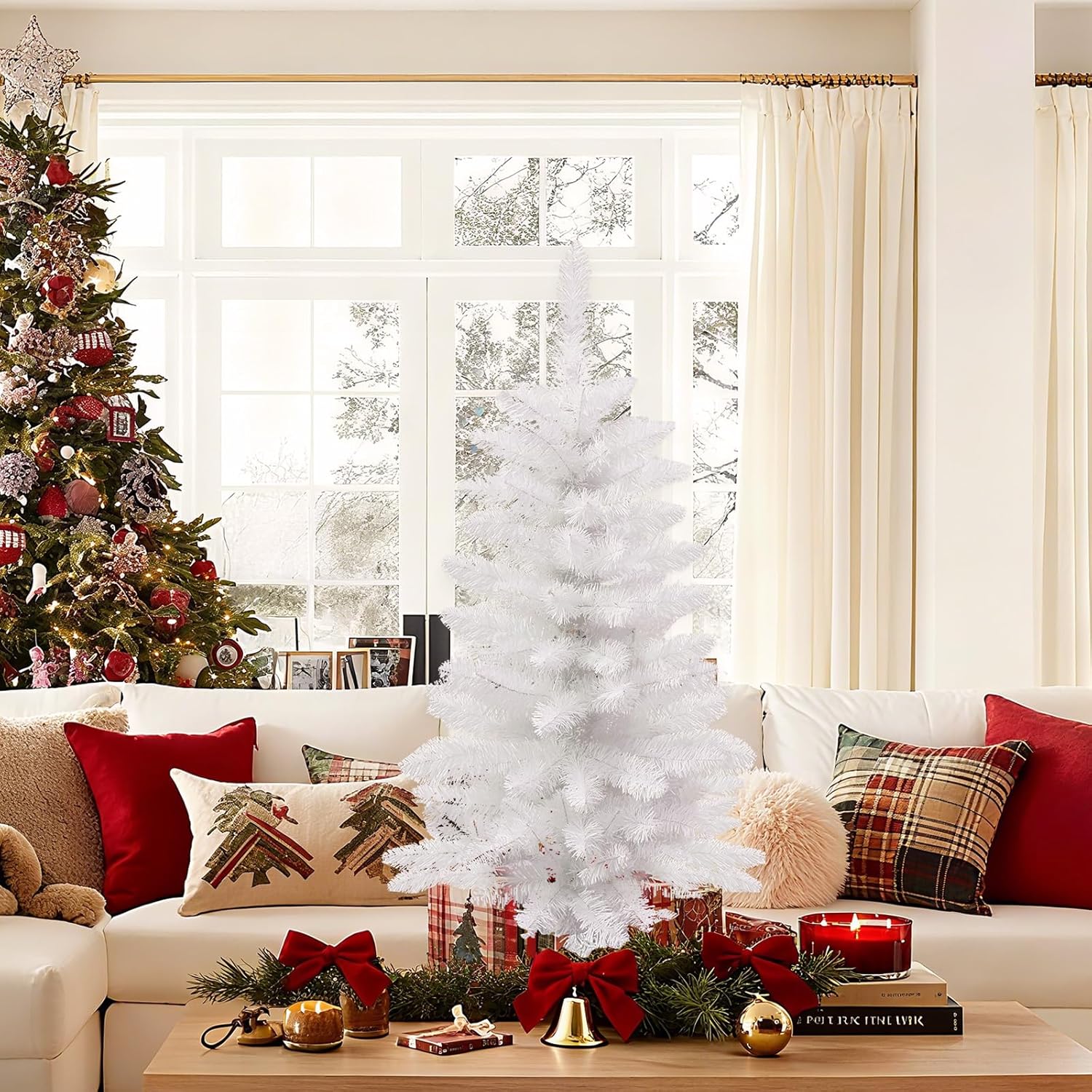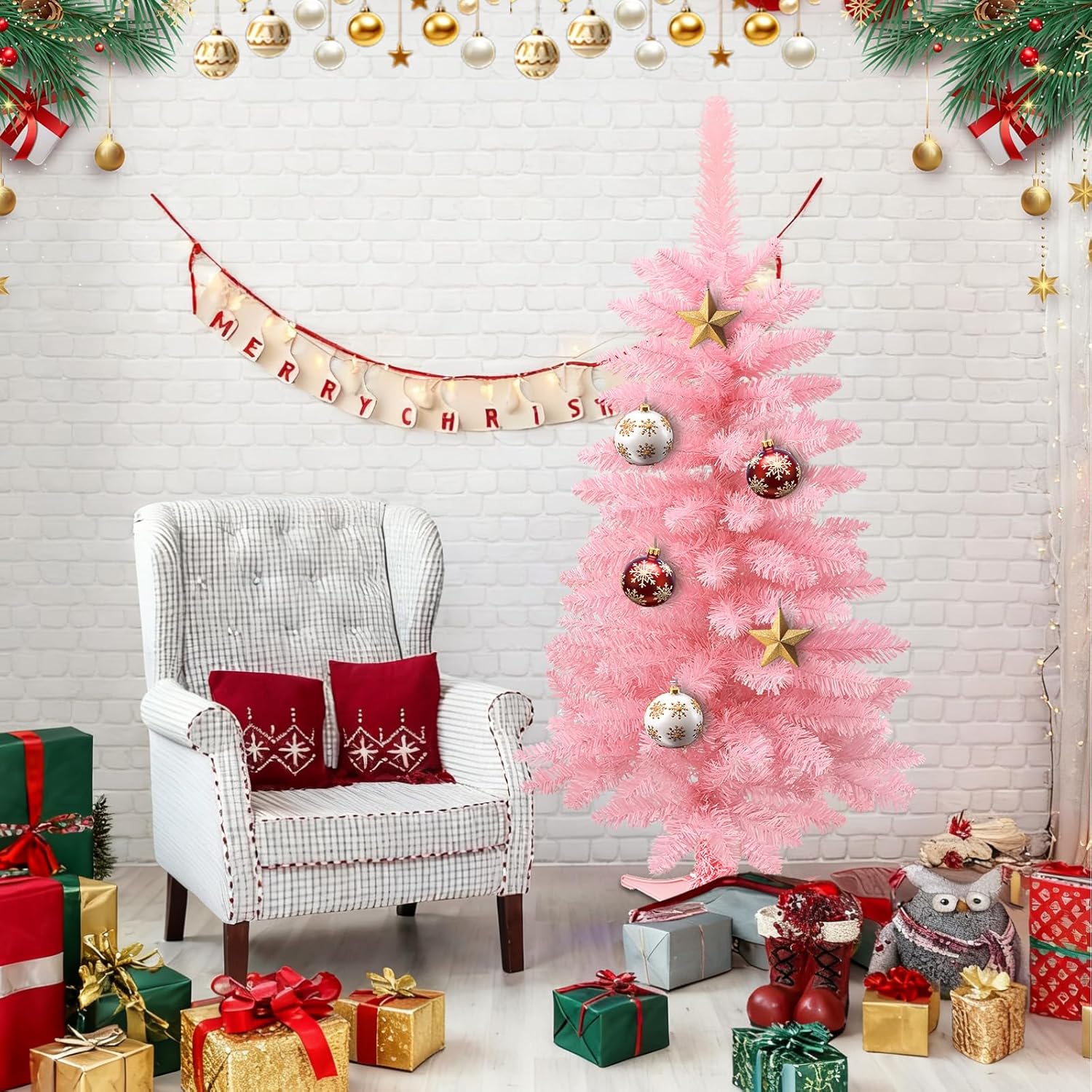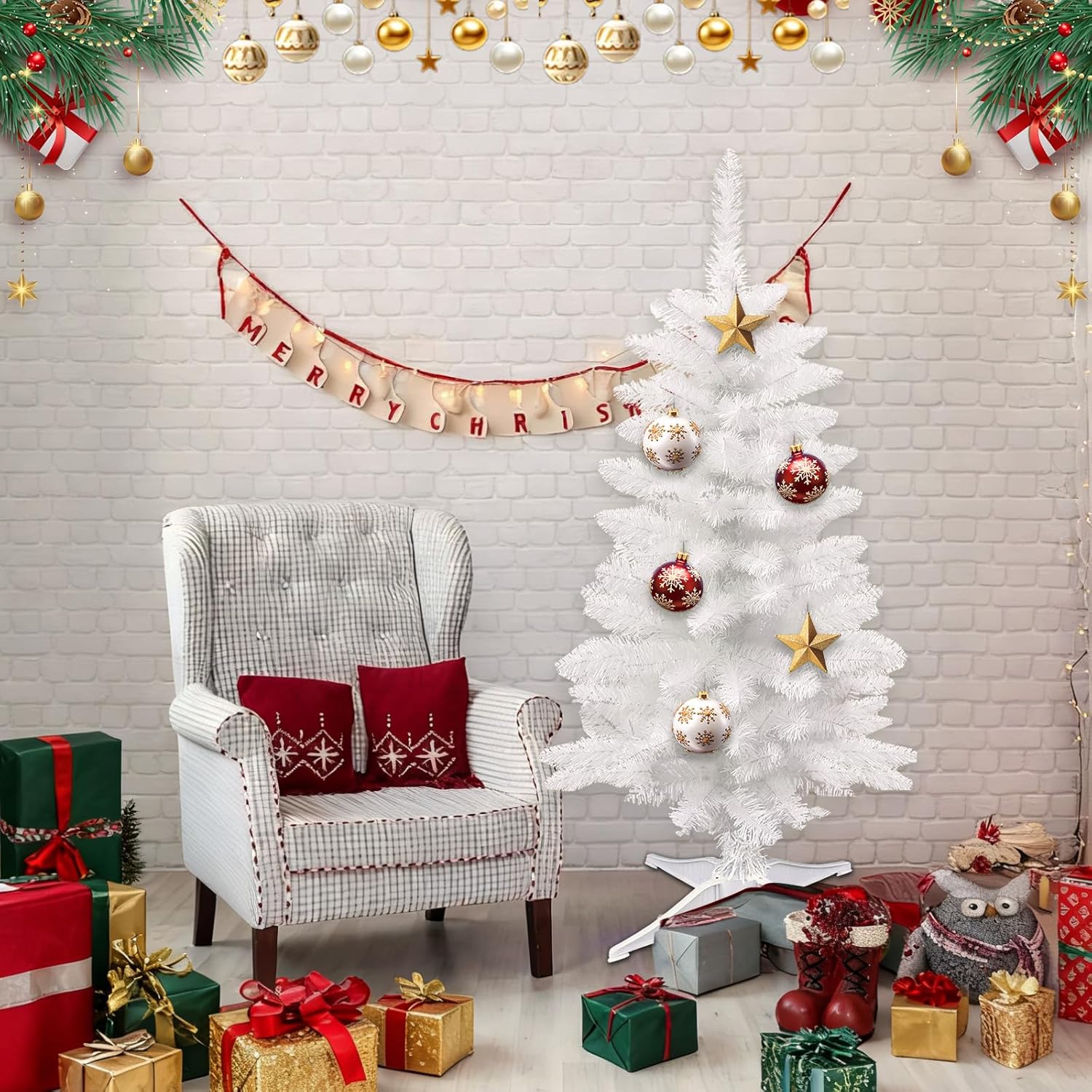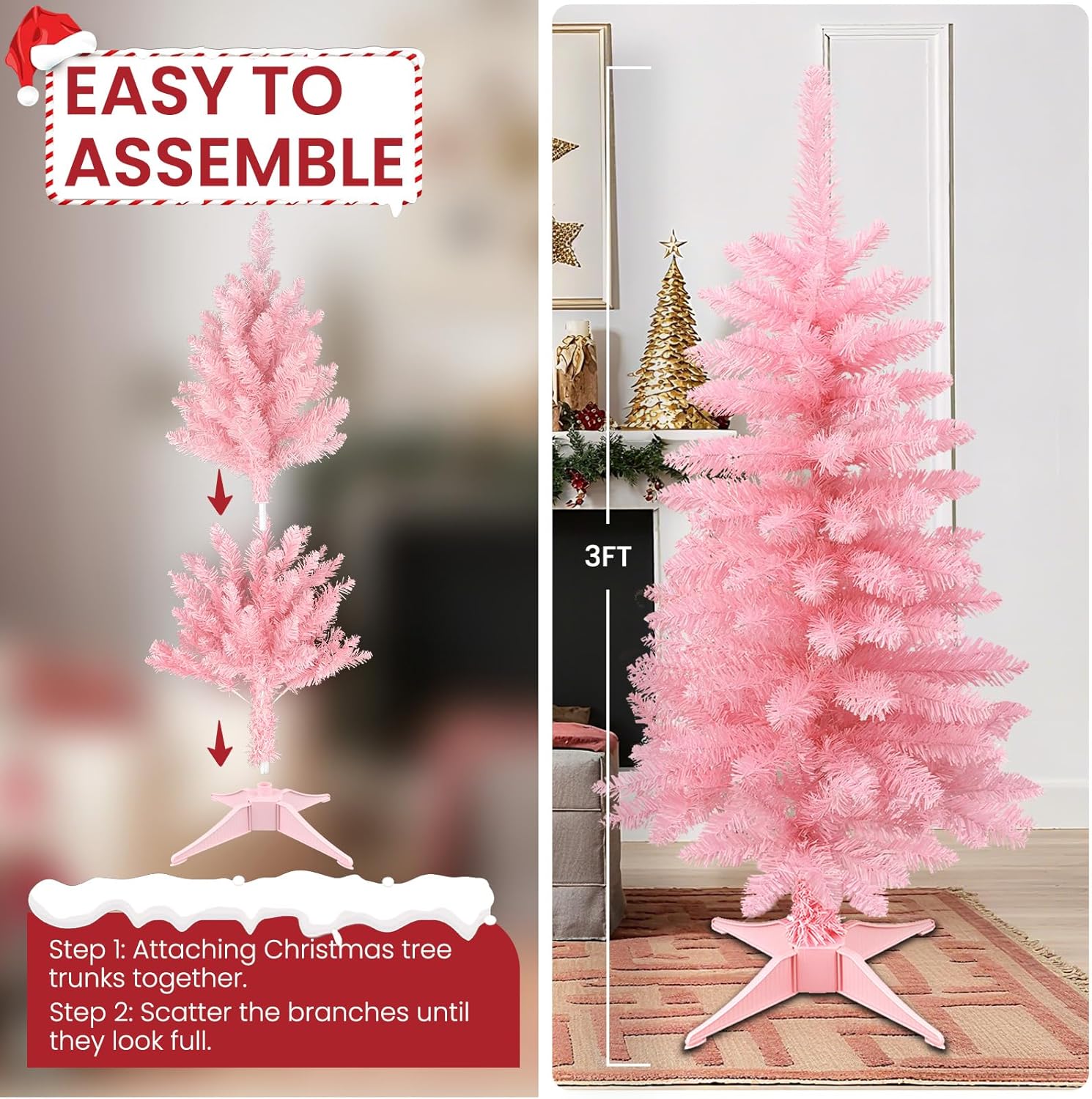Small Christmas Tree, 3FT Artificial Tabletop Mini Christmas Tree for Office, Desk, Indoor, Outdoor, Holiday Xmas Party Decoration, Not Pre-lit Lights, Easy Assembly, Green