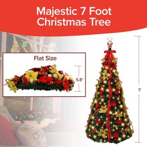 Superstar Santa Pop-Up Signature Series Christmas Tree, 7FT, Pre-Lit w/300 LED Lights, AS SEEN ON TV, Santa Topper Projects North Star, Opens Instantly, Fully Decorated, 7 Colors, 32 Modes w/Remote
