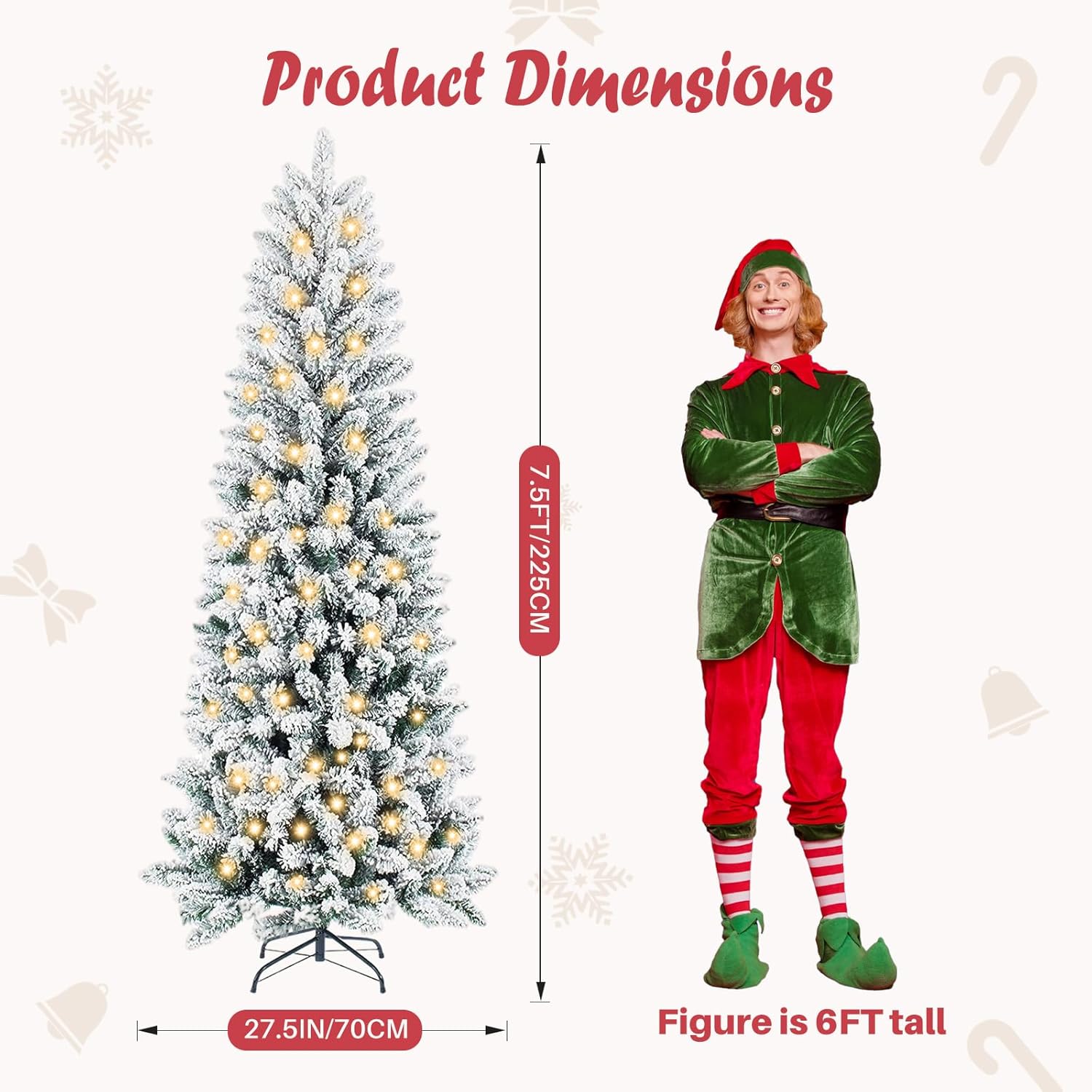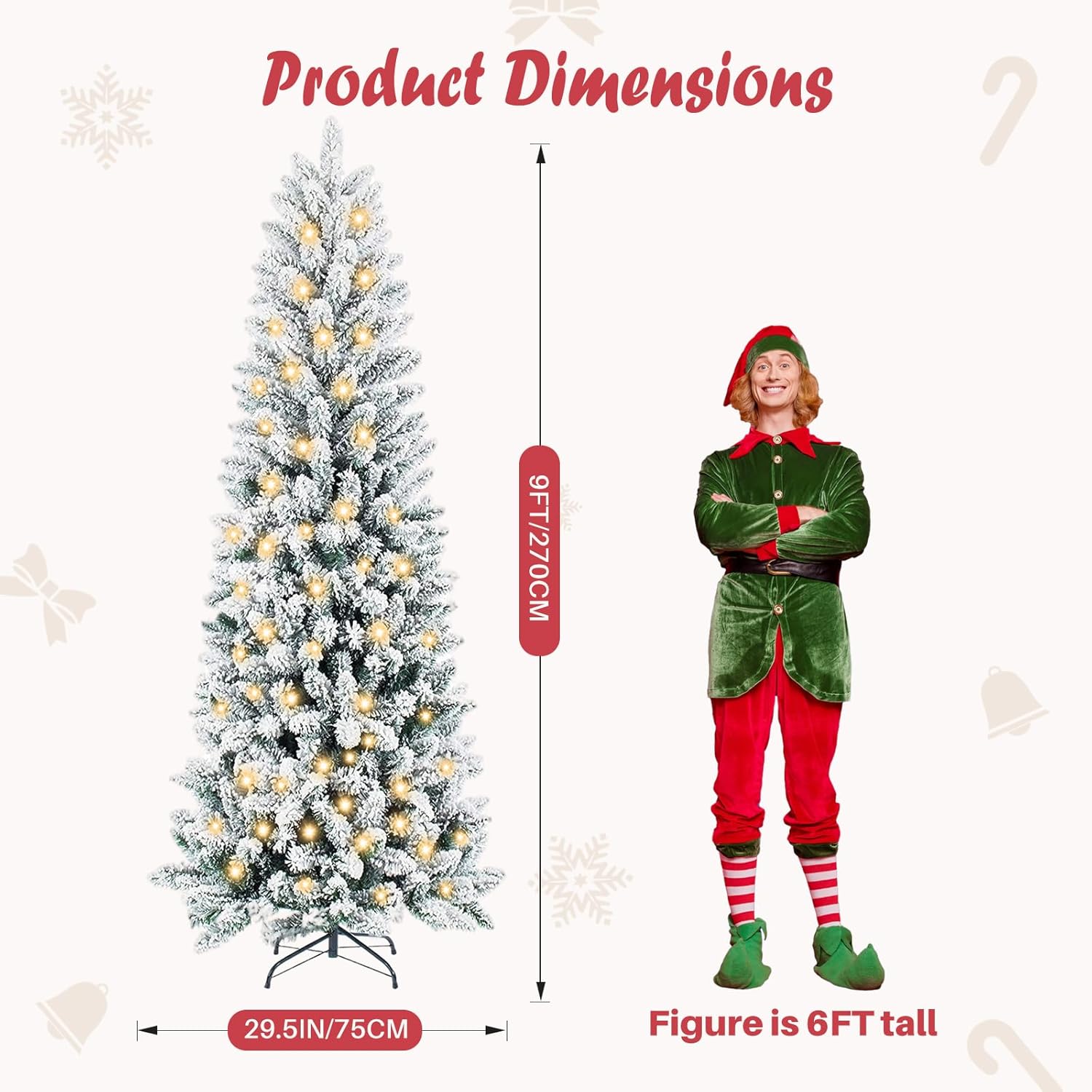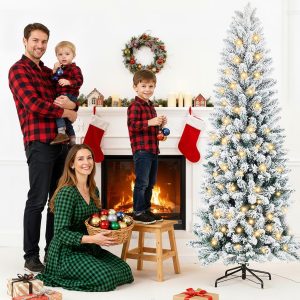 - [Slim Pencil Design] With its sleek pencil silhouette, pencil Christmas trees with lights is expertly crafted to fit snugly into corners, small rooms, and any space where floor area is limited. Perfect for small spaces—bring festive joy to any corner without sacrificing style or floor area.