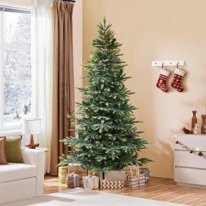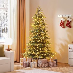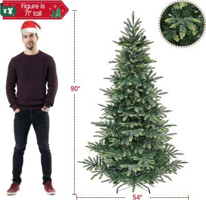 - Artificial Christmas Tree: Standing 7.5 feet tall, this pre-lit Christmas tree includes 1128 mixed PE/PVC tips and 550 warm LED lights, offering a cozy, elegant look to complete your seasonal decor with ease