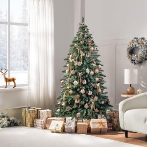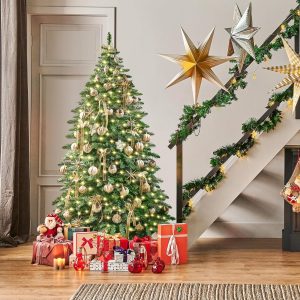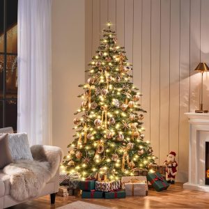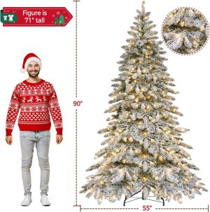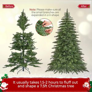 Yaheetech 7.5ft Pre-Lit Christmas Fir Tree with 550 Warm LED Lights & 1278 PVC Tips,Hinged Holiday Decorative Tree with Foldable Stand & Protective Foot Caps,Green
