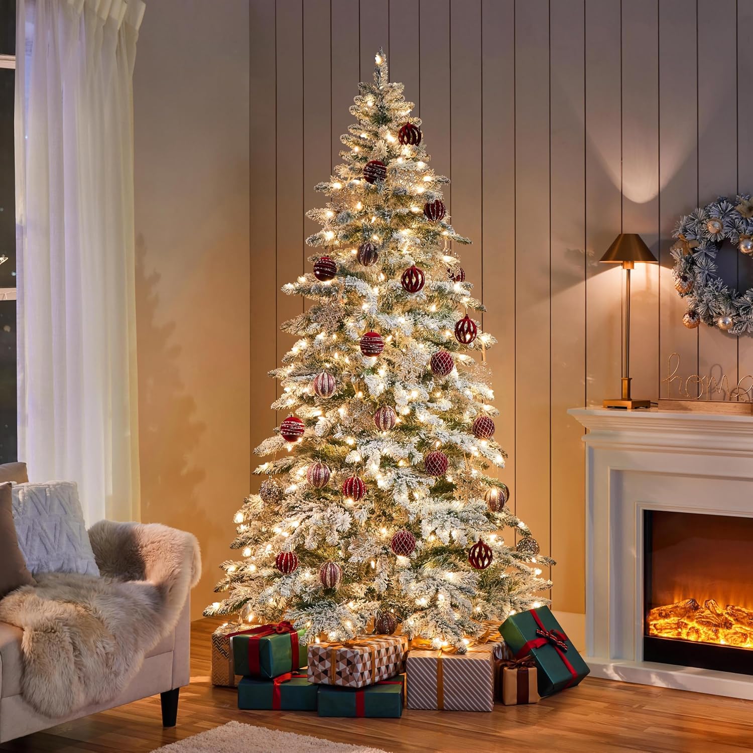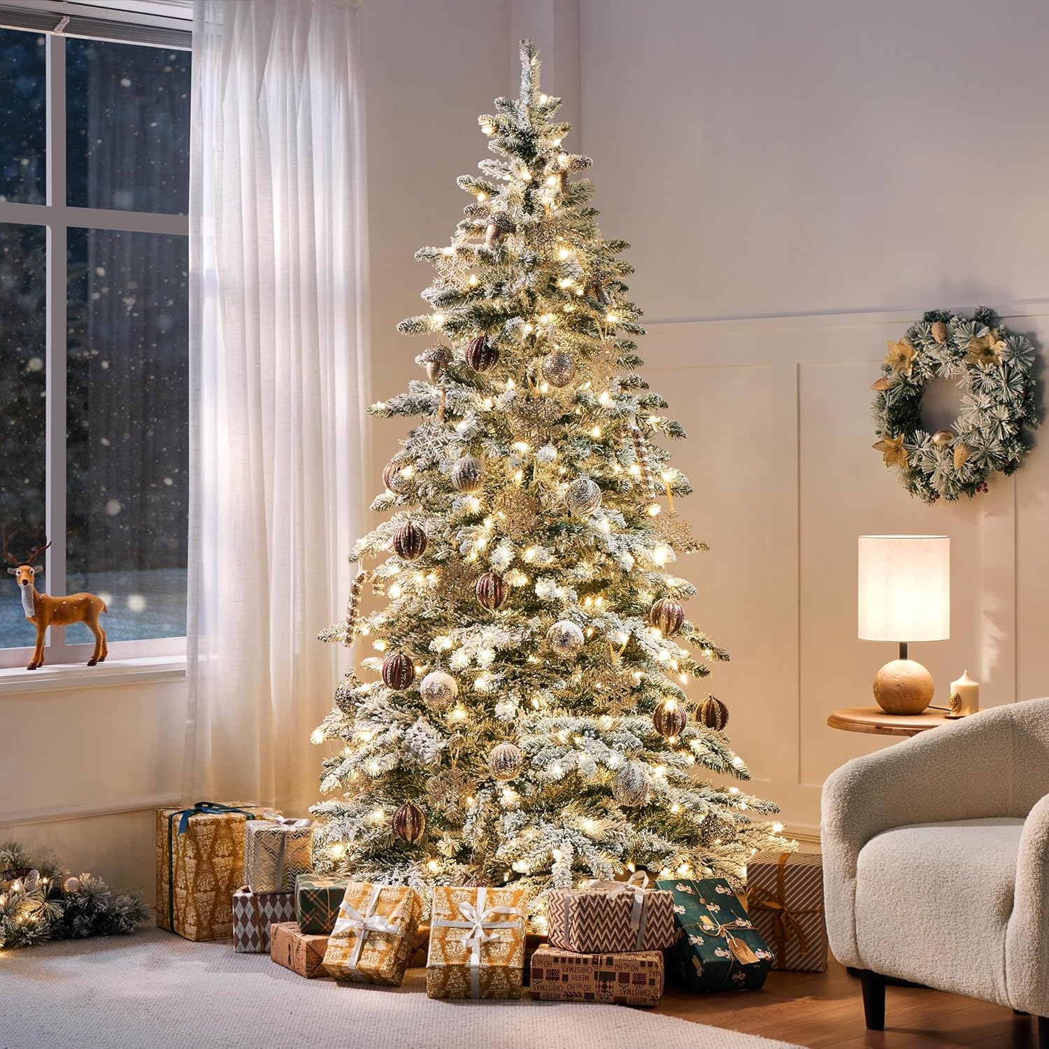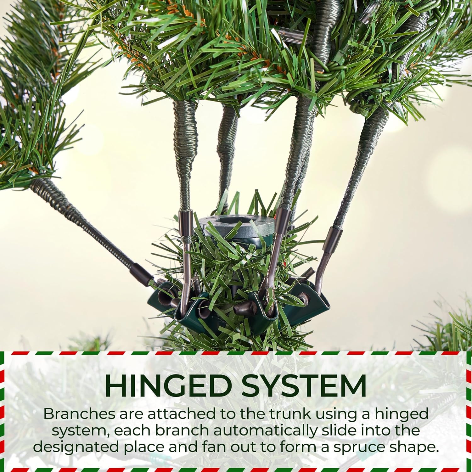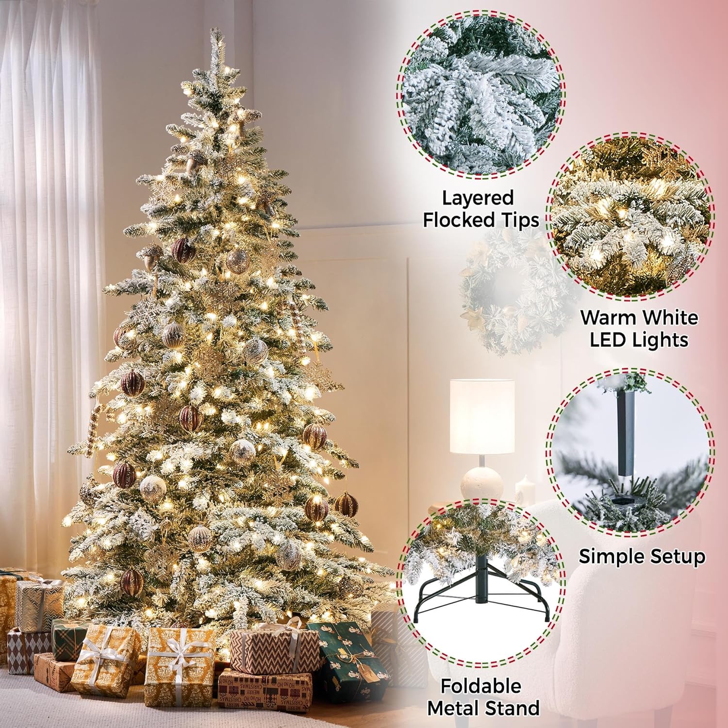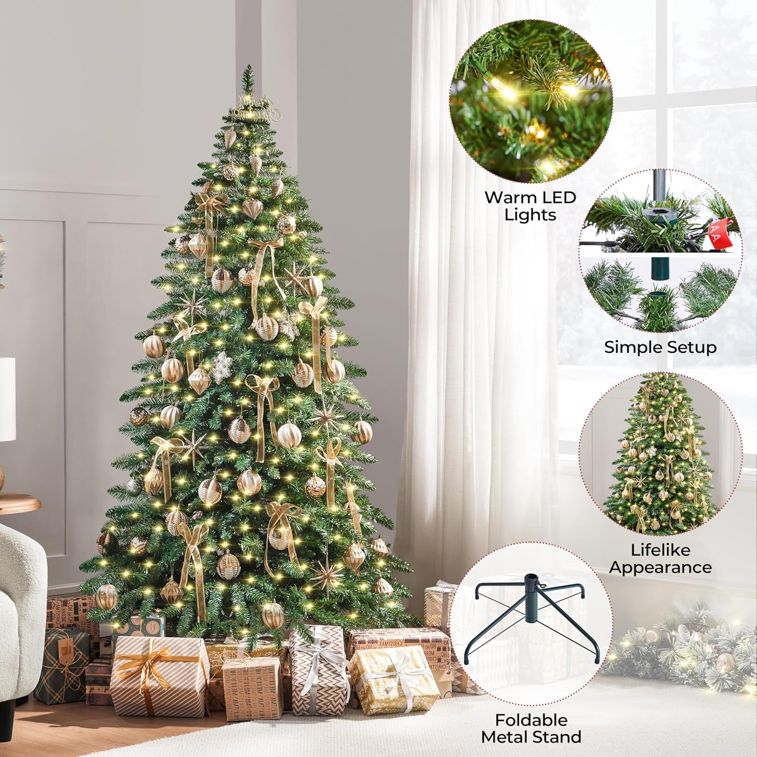 Yaheetech 7.5ft Pre-Lit Christmas Fir Tree with 550 Warm LED Lights & 1278 PVC Tips,Hinged Holiday Decorative Tree with Foldable Stand & Protective Foot Caps,Green