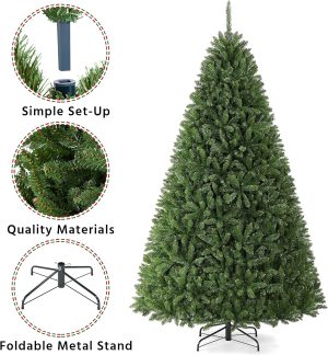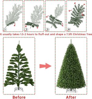 Yaheetech 7.5ft Premium Unlit Douglas Full Fir Christmas Tree with Foldable Stand Extra Thick Xmas Tree for Home Party Holiday Decoration with 2326 Branch Tips