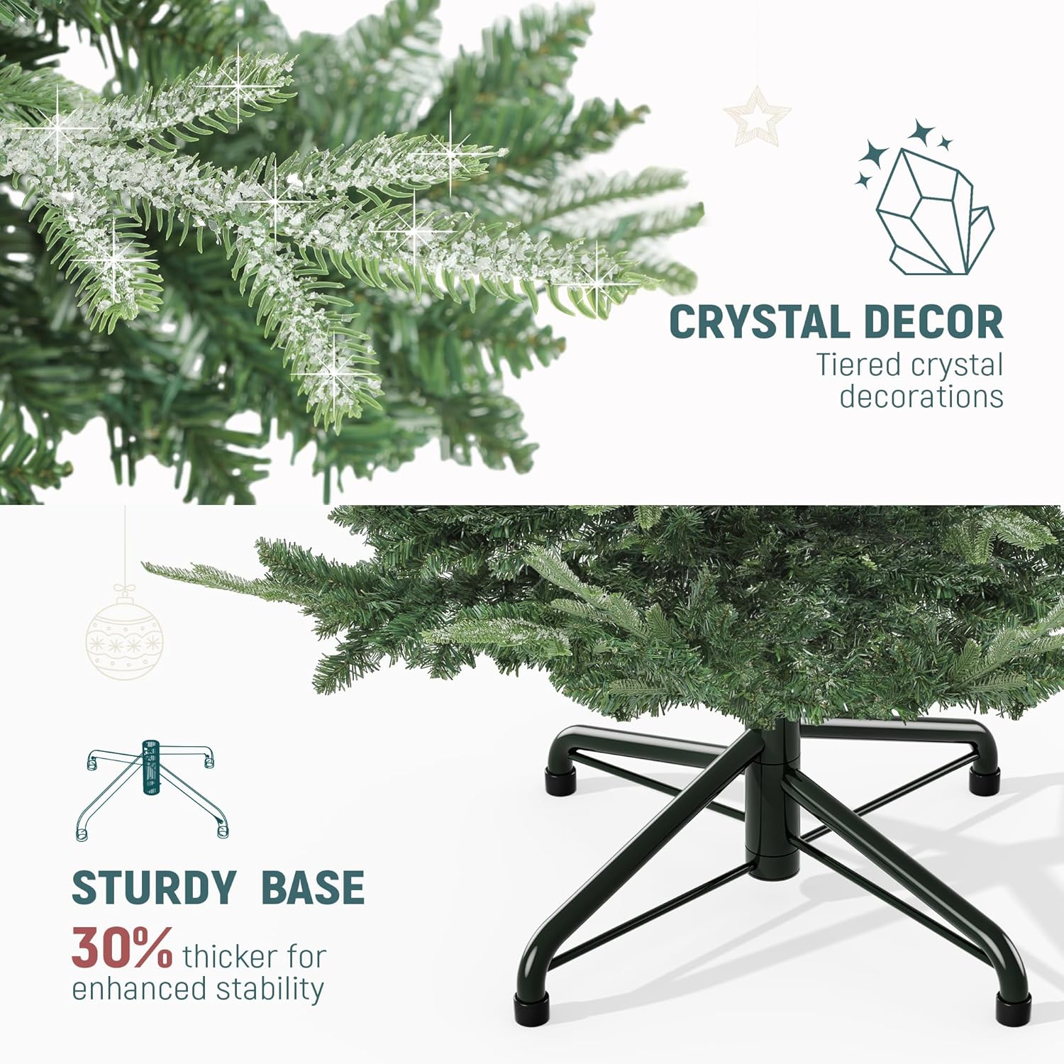- Crystal-Decorated Aspen Fir: Standing 6.5 feet tall, this tree features 900 PE & PVC mixed branch tips adorned with sparkling crystal-like accents. Its lifelike green pine needles and graceful shape bring the charm of a winter forest into your home