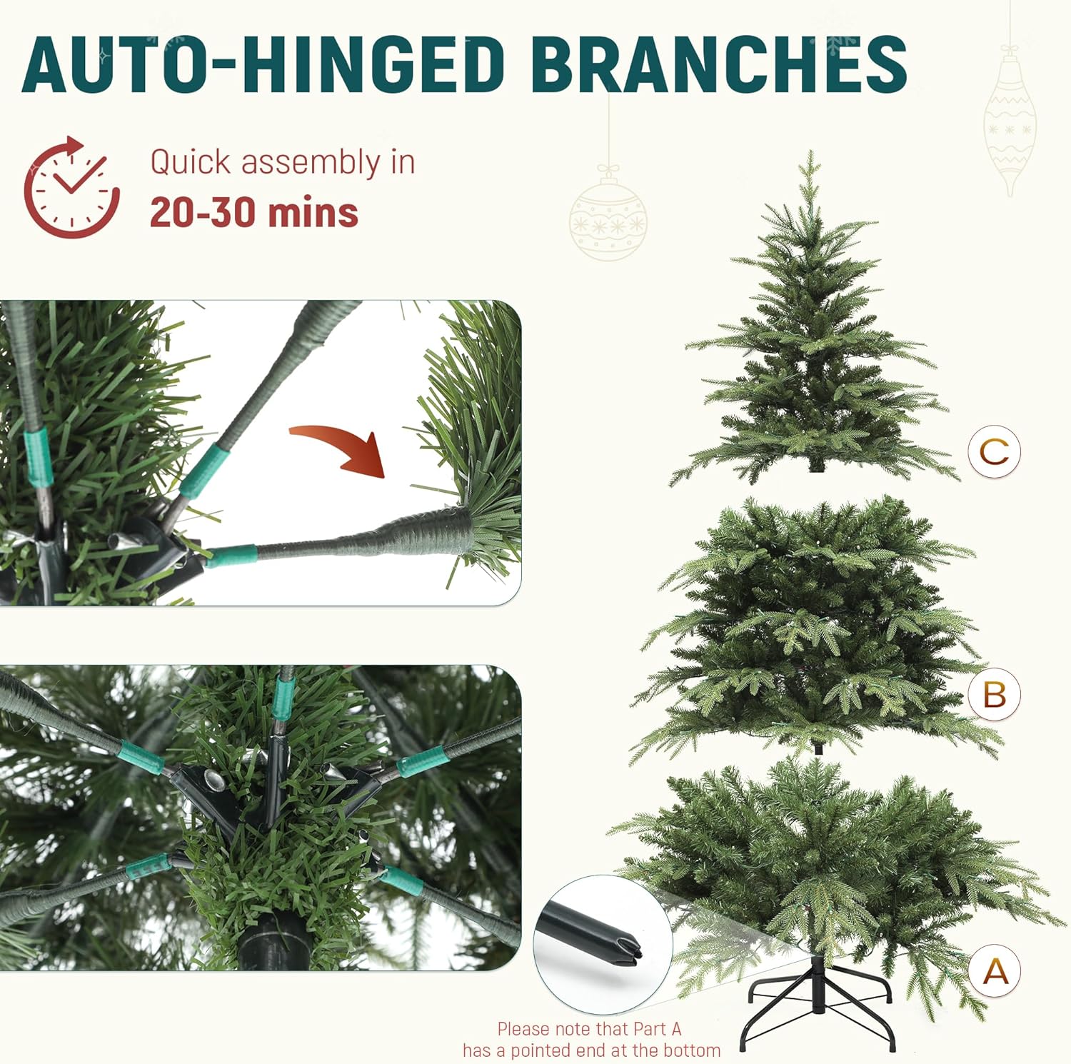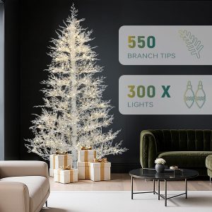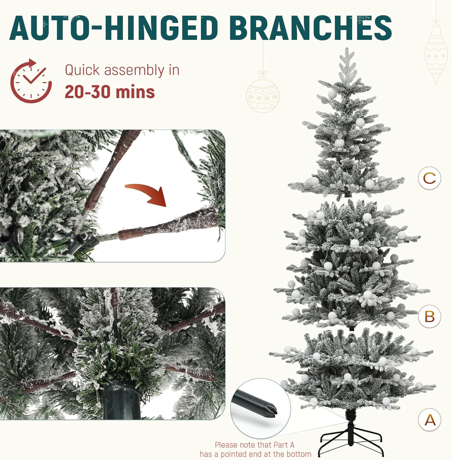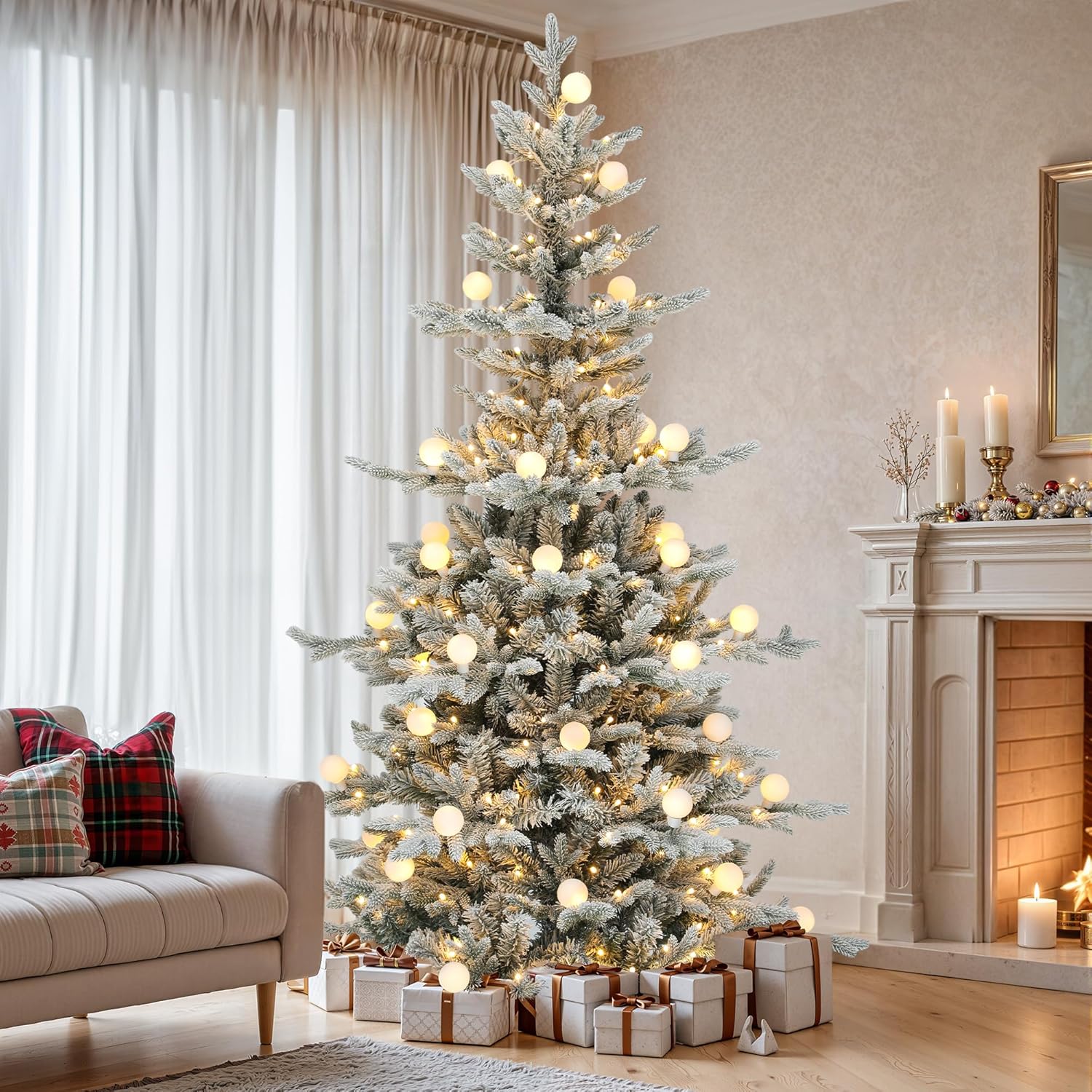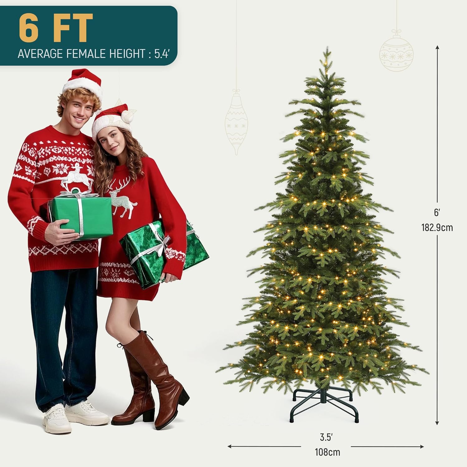 YITAHOME 6FT Prelit Slim Fraser Grande Christmas Tree with Remote Control, Artificial Hinged Drooping Pencil Prelit Holiday Christmas Tree w/ 1628 Mixed PE & PVC Tips, 300 Lights & 11 Light Modes