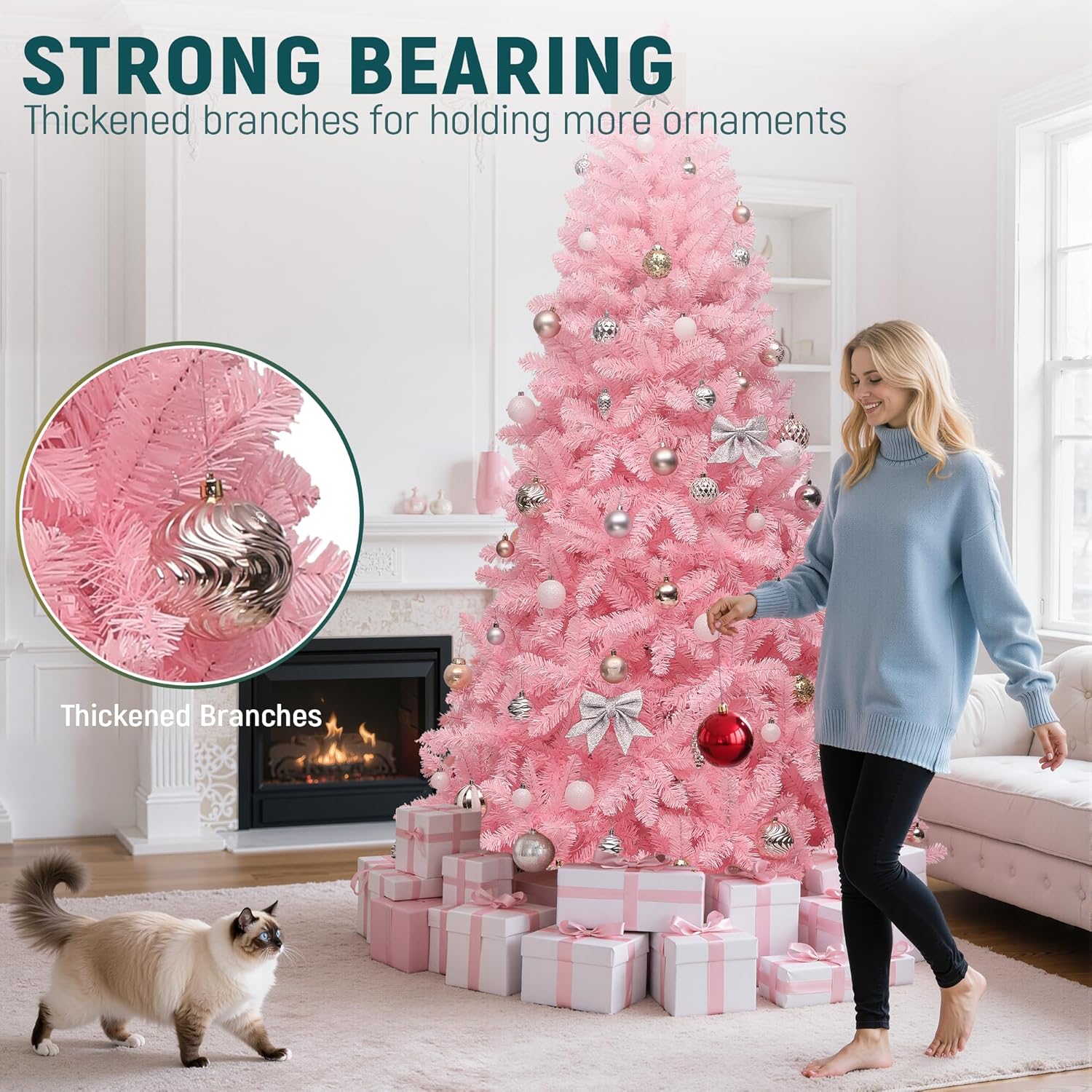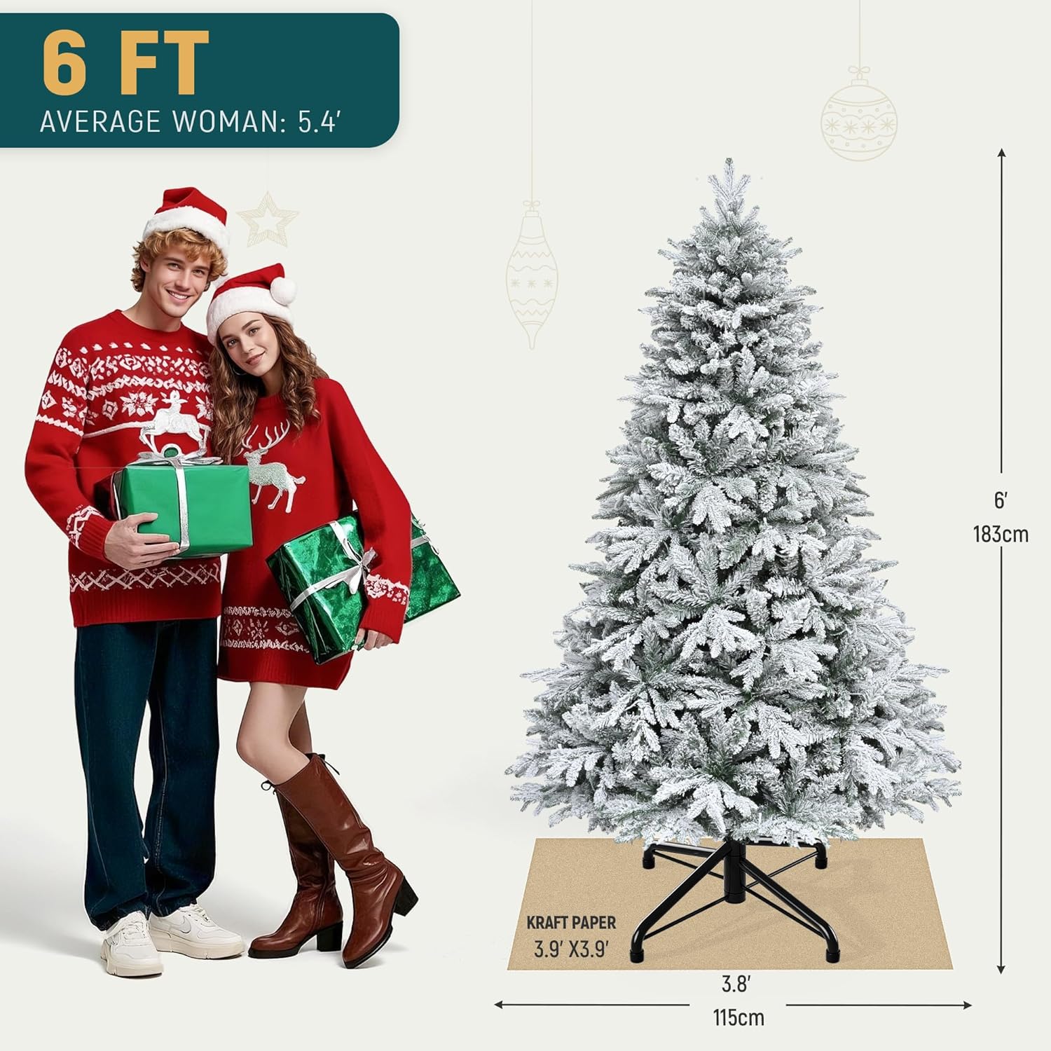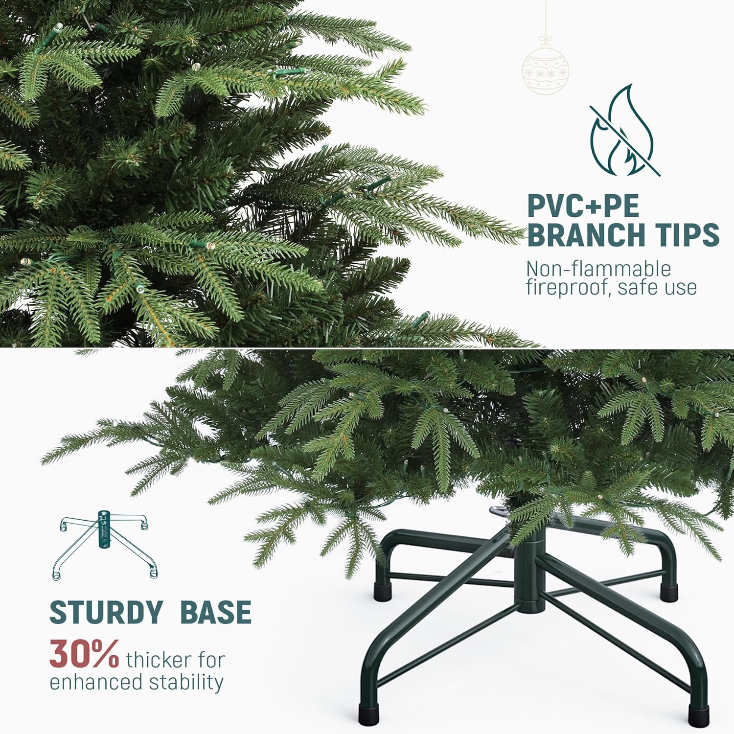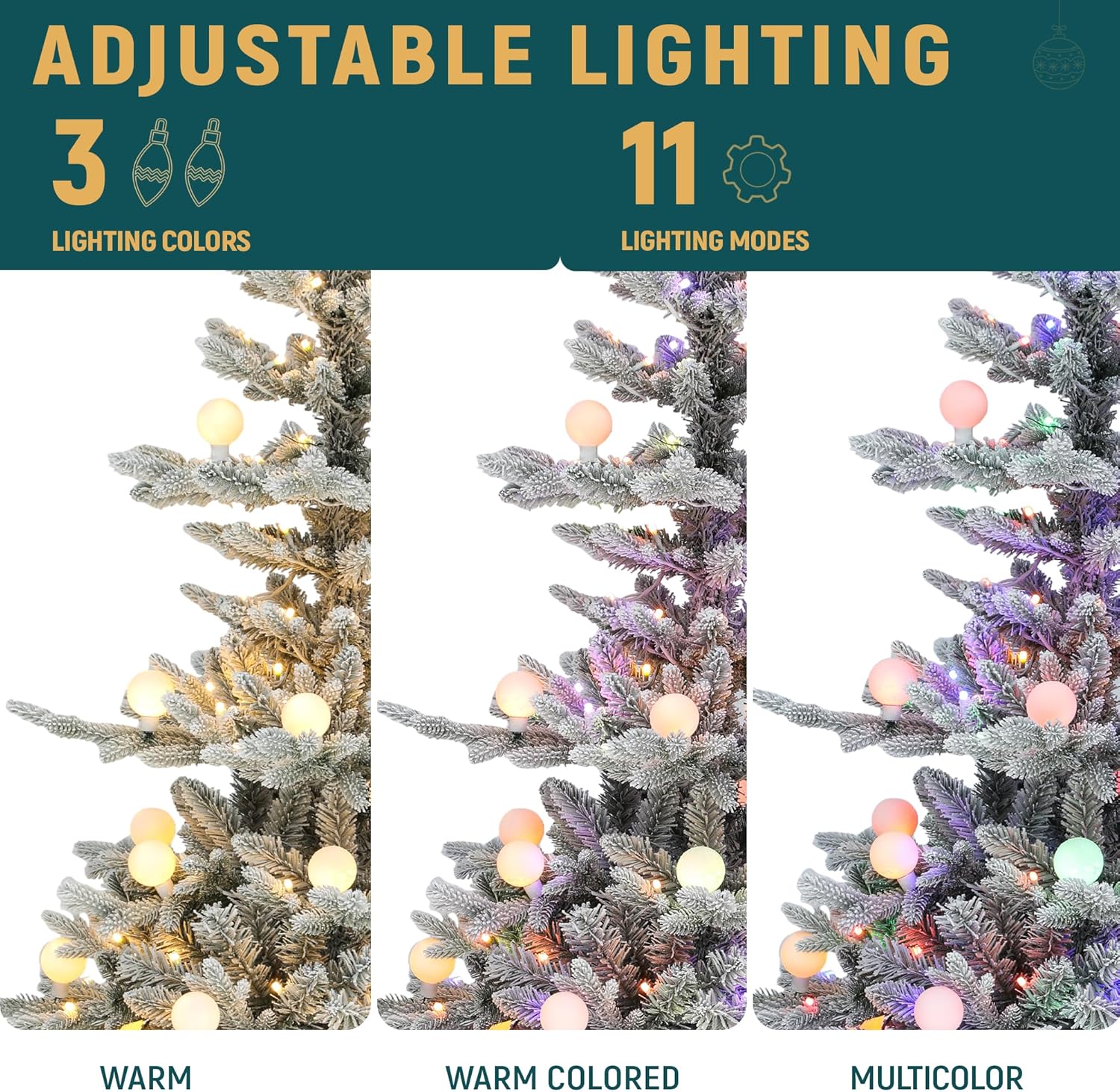 YITAHOME 6FT Prelit Slim Fraser Grande Christmas Tree with Remote Control, Artificial Hinged Drooping Pencil Prelit Holiday Christmas Tree w/ 1628 Mixed PE & PVC Tips, 300 Lights & 11 Light Modes