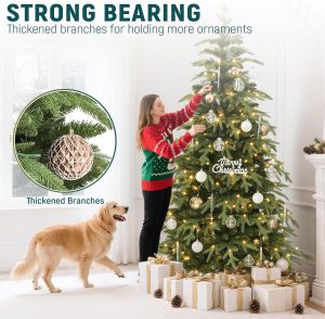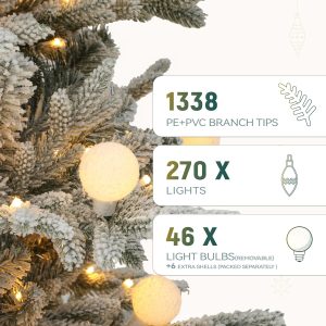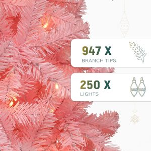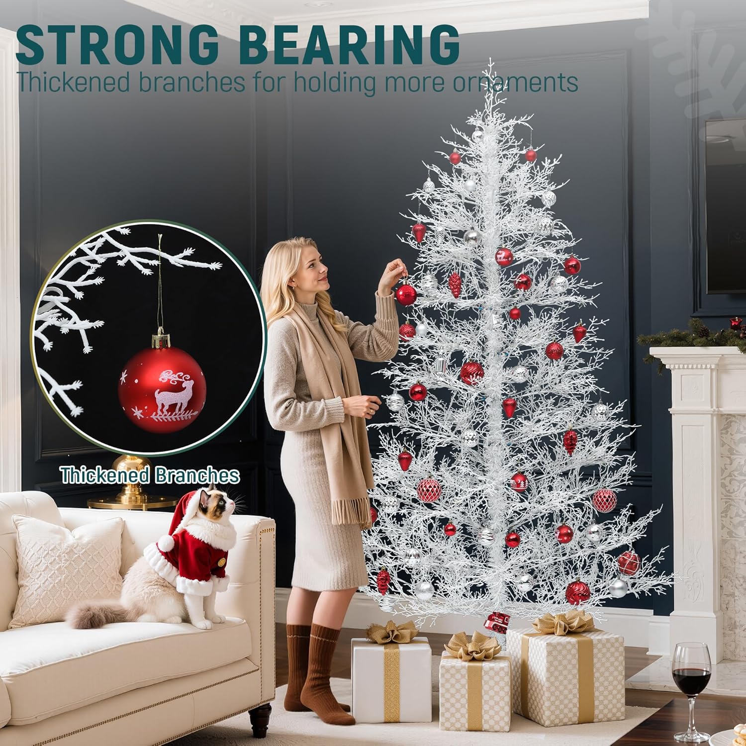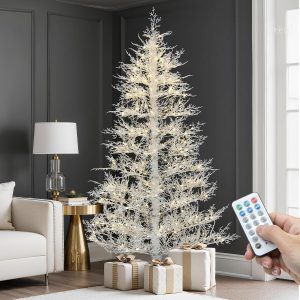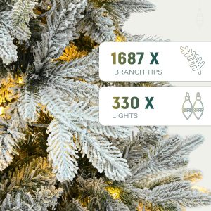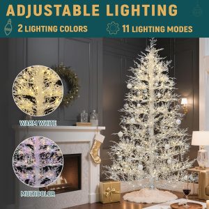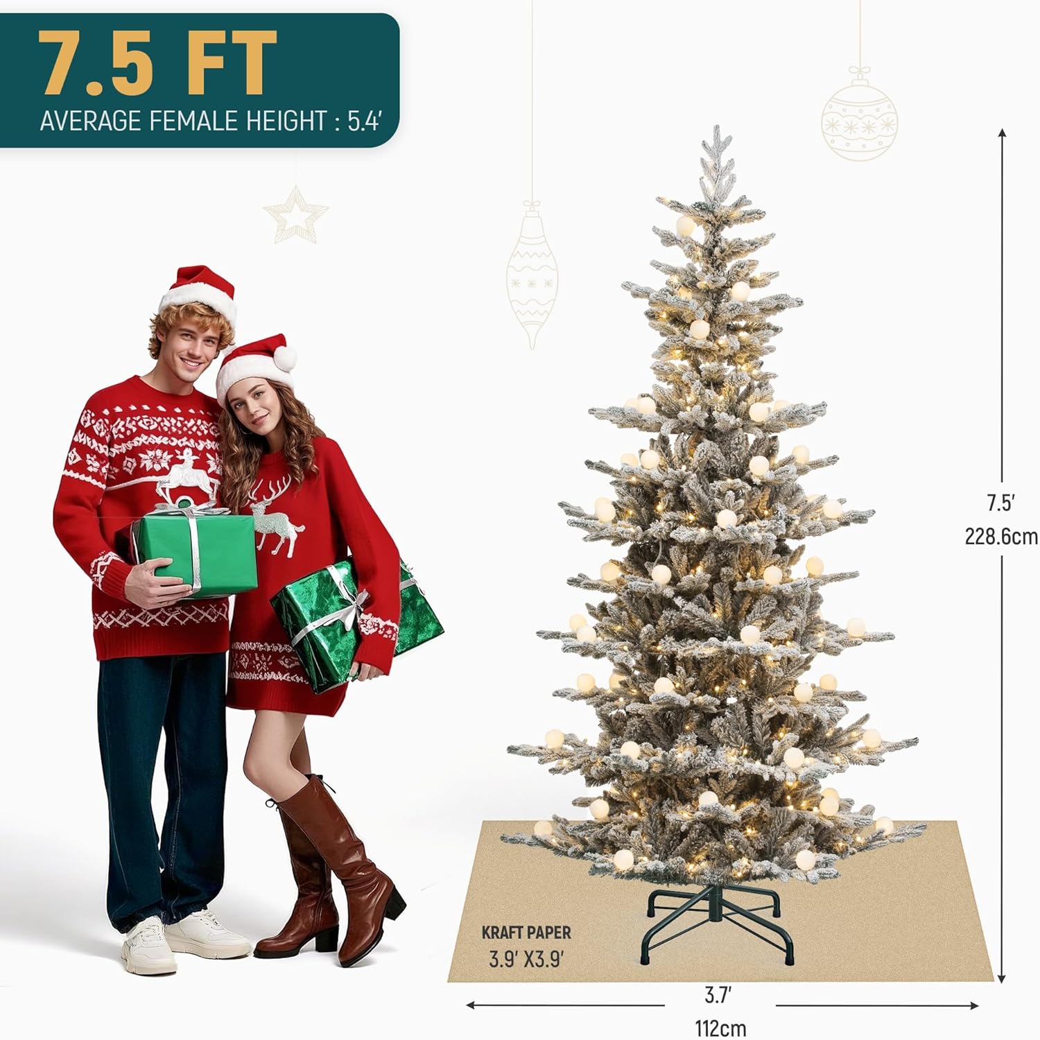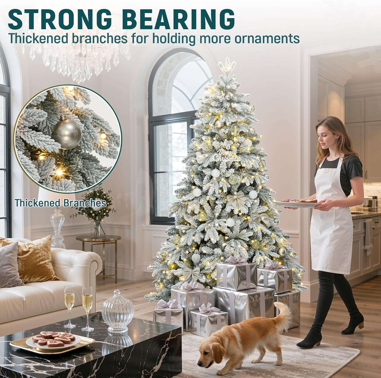 YITAHOME 6FT Prelit Slim Fraser Grande Christmas Tree with Remote Control, Artificial Hinged Drooping Pencil Prelit Holiday Christmas Tree w/ 1628 Mixed PE & PVC Tips, 300 Lights & 11 Light Modes
